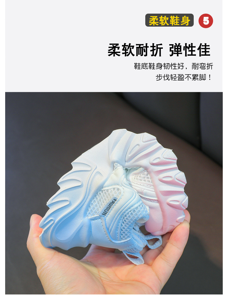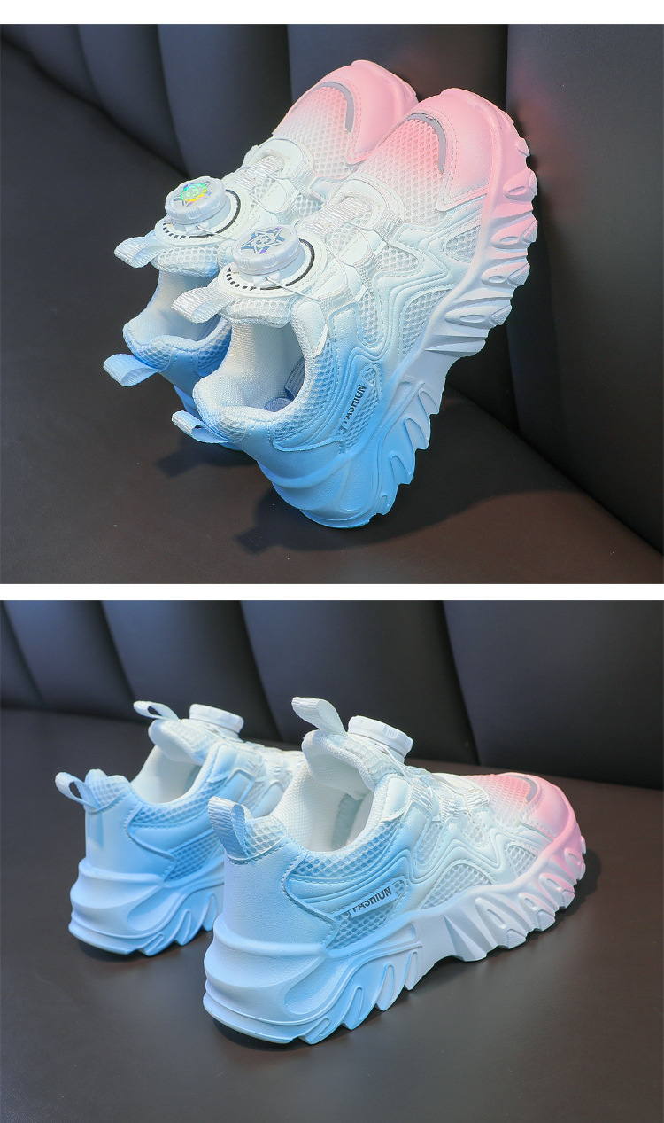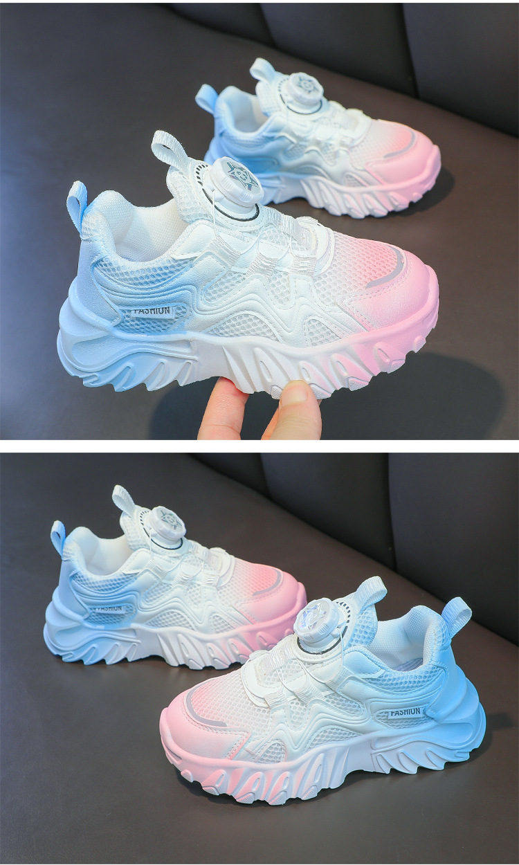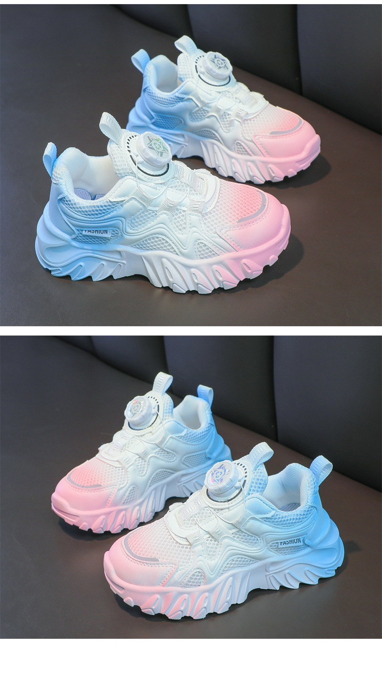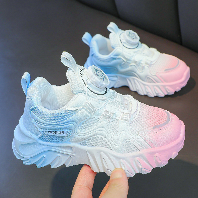 소년과 소녀 운동화 2023 봄과 여름 한국 스타일 인기 패션 회전 버튼 메쉬 통기성 중대형 어린이 아빠 신발