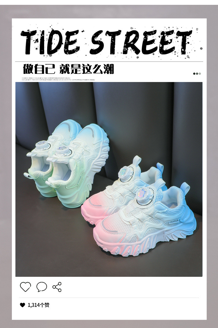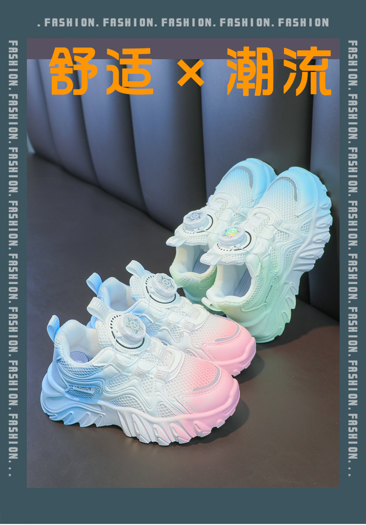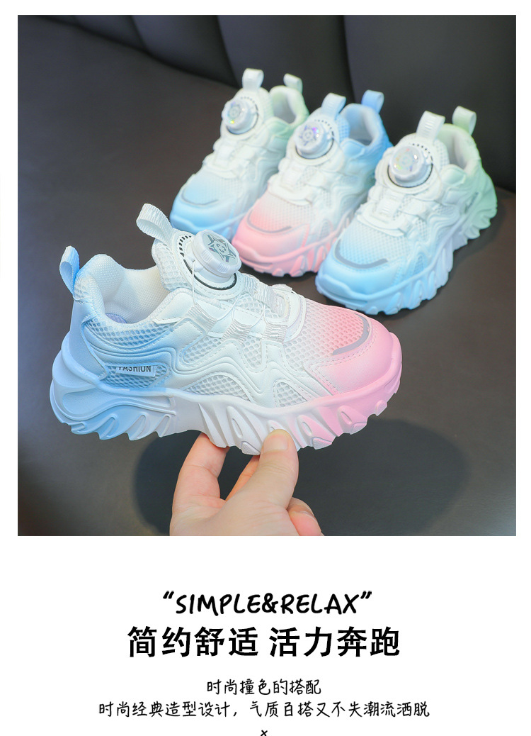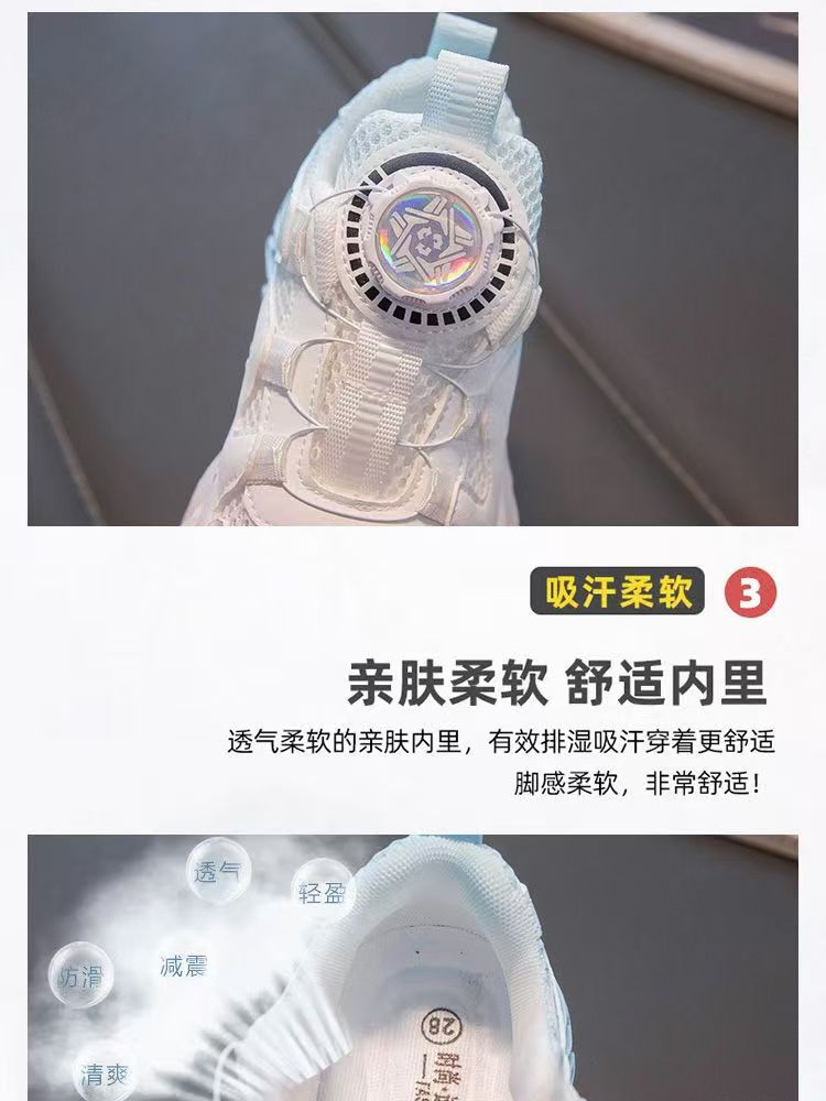 소년과 소녀 운동화 2023 봄과 여름 한국 스타일 인기 패션 회전 버튼 메쉬 통기성 중대형 어린이 아빠 신발스토어 가기