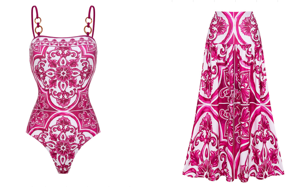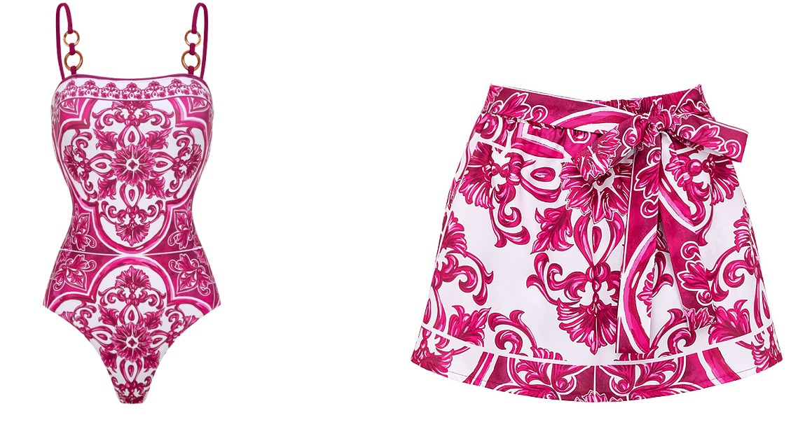2025년 핫 아이템 수영복 섹시한 원피스 프린트 여성 스커트 세트 유럽 및 미국 스타일 투피스 레이스업 팬츠 세트