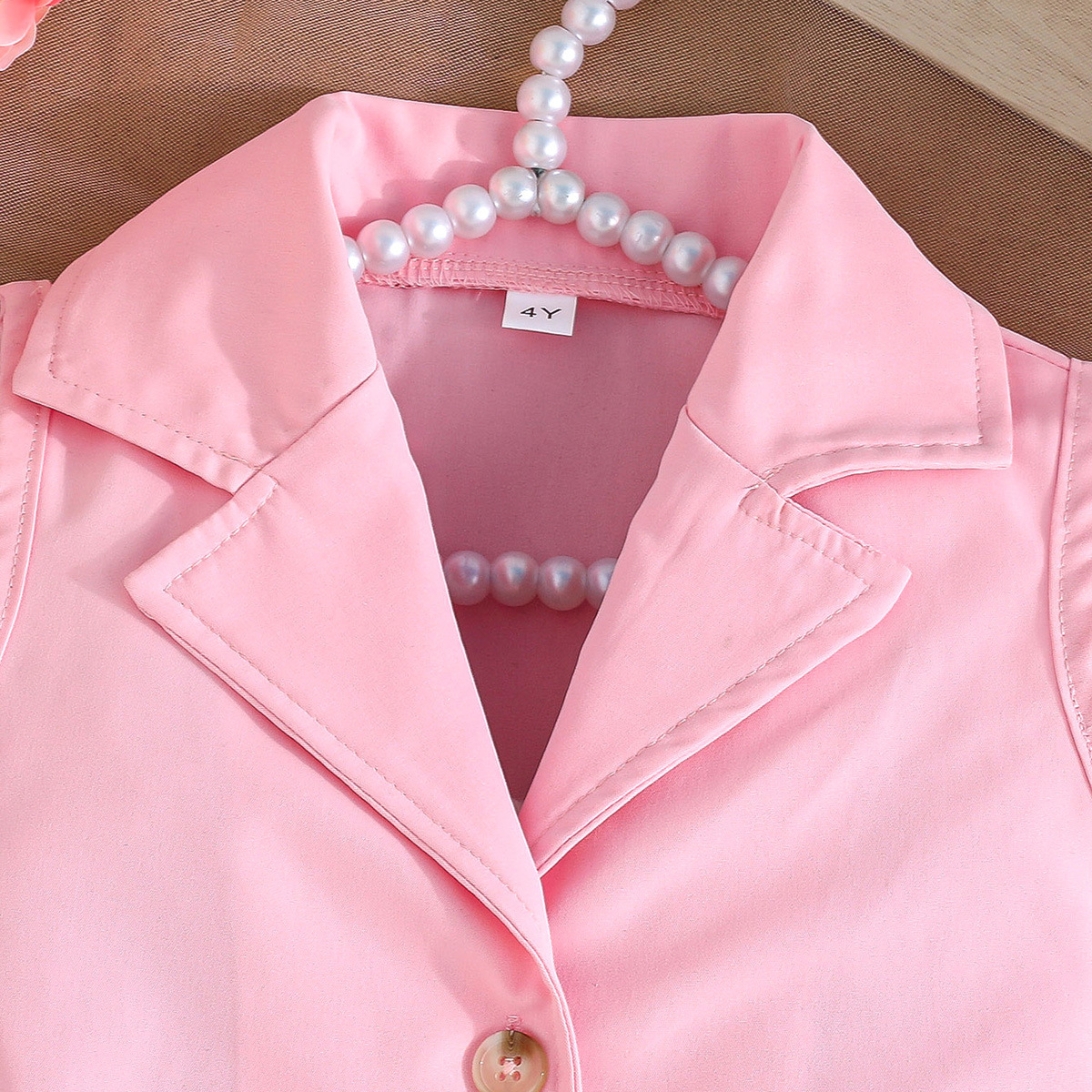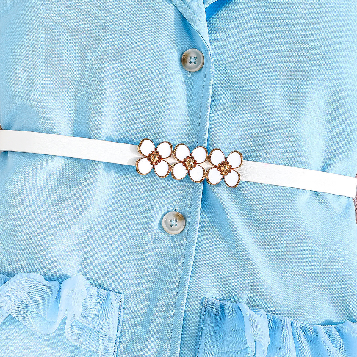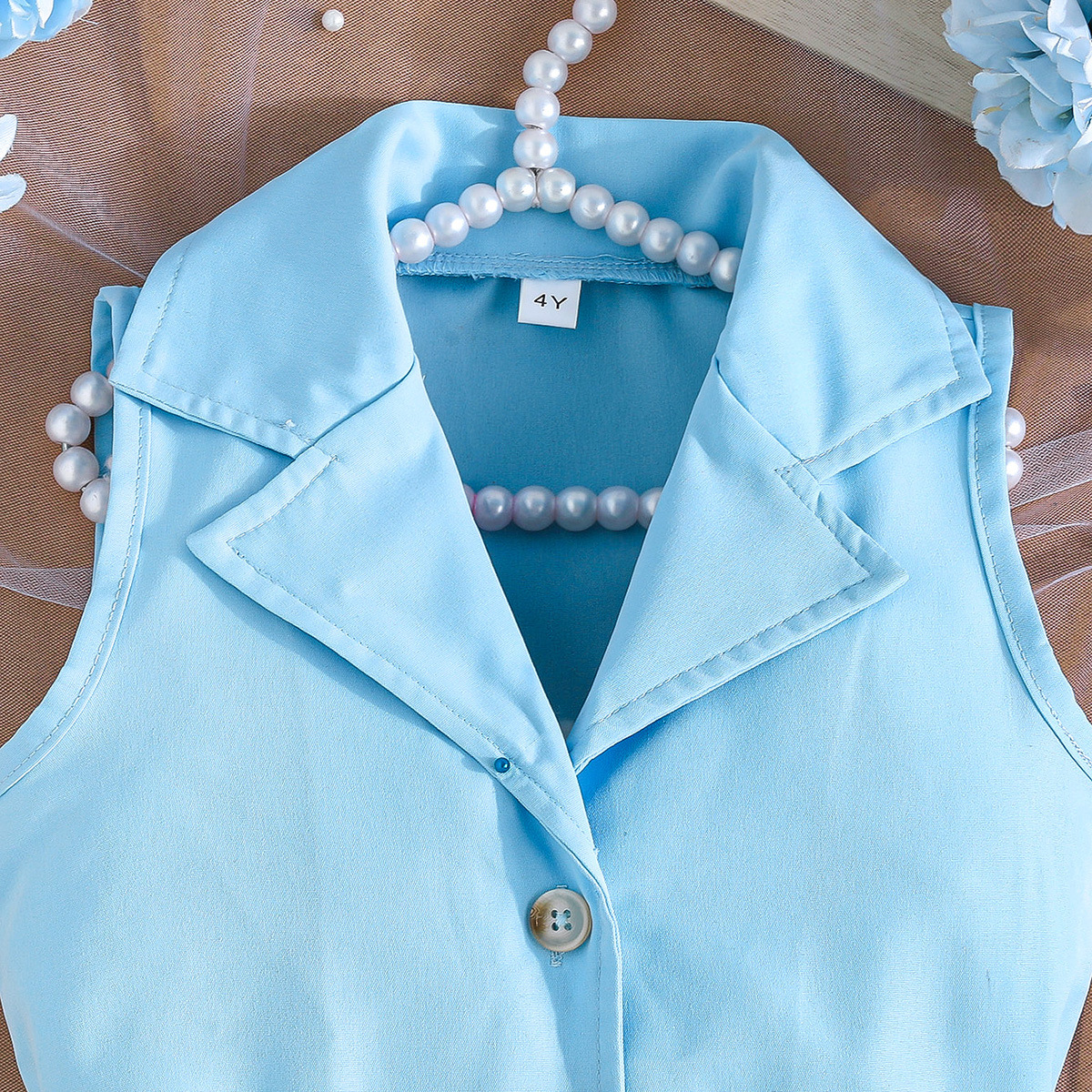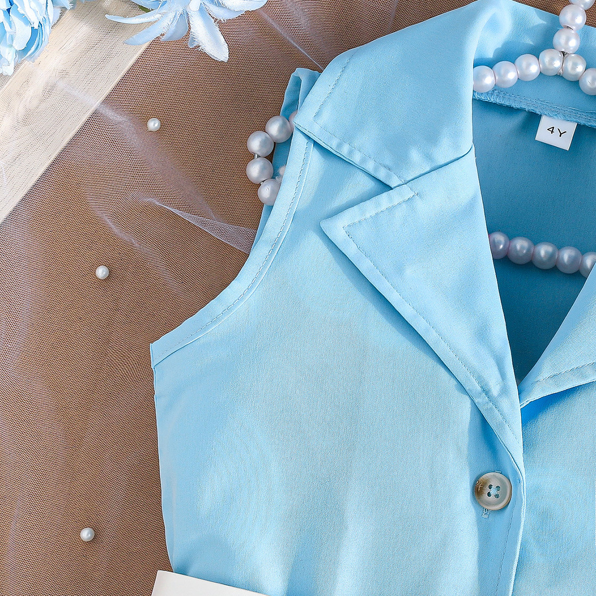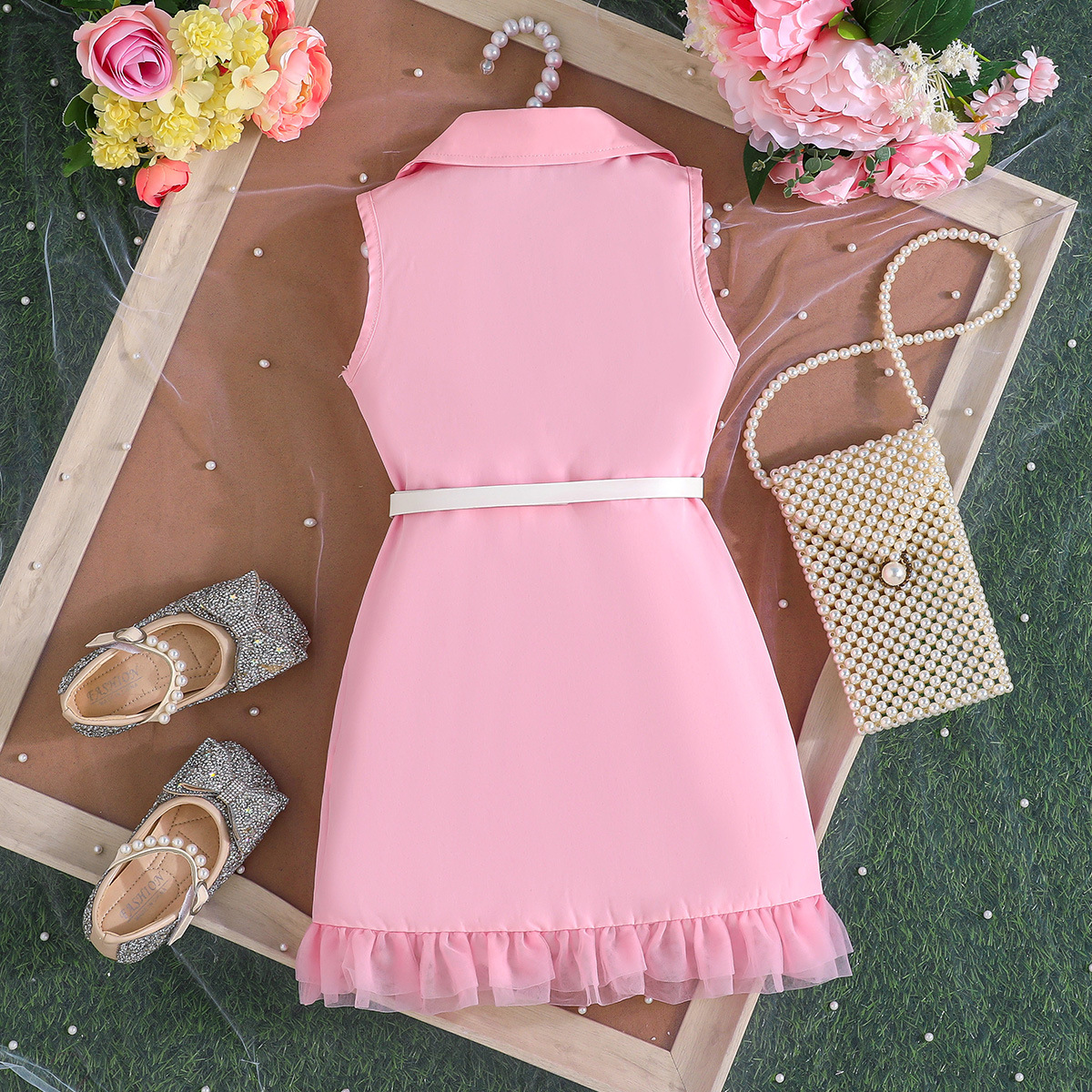 2025 신제품 A 크로스보더 여름 신작 여아 솔리드 컬러 민소매 정장 패션 드레스 + 벨트 투피스 세트