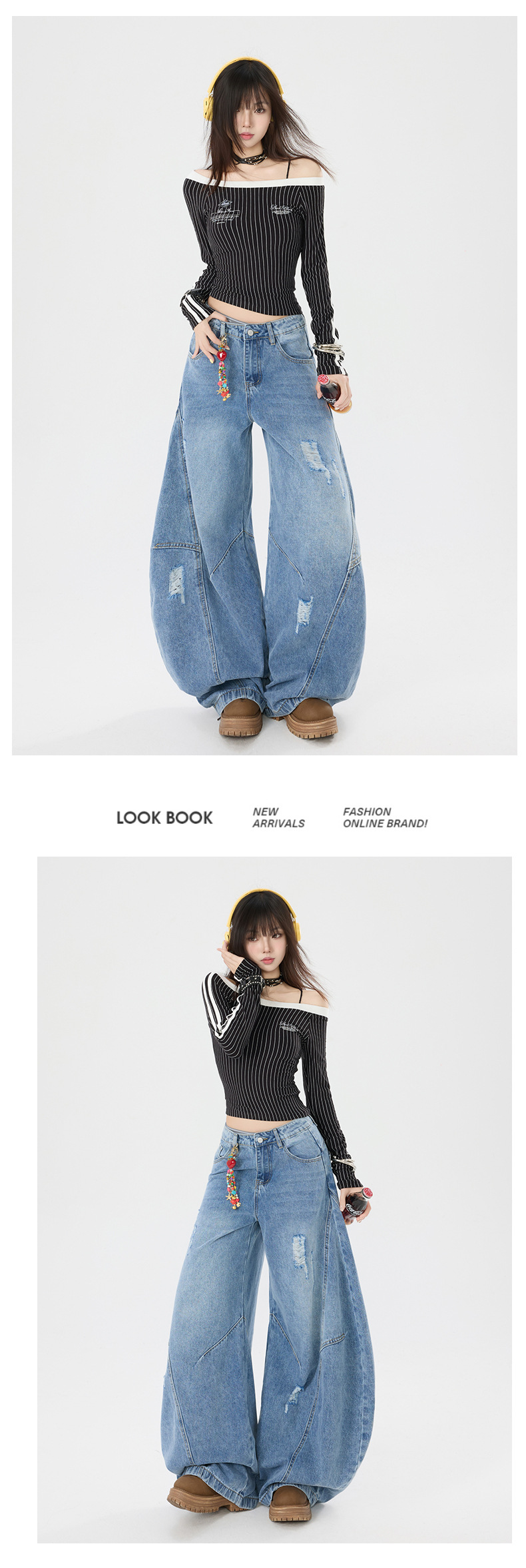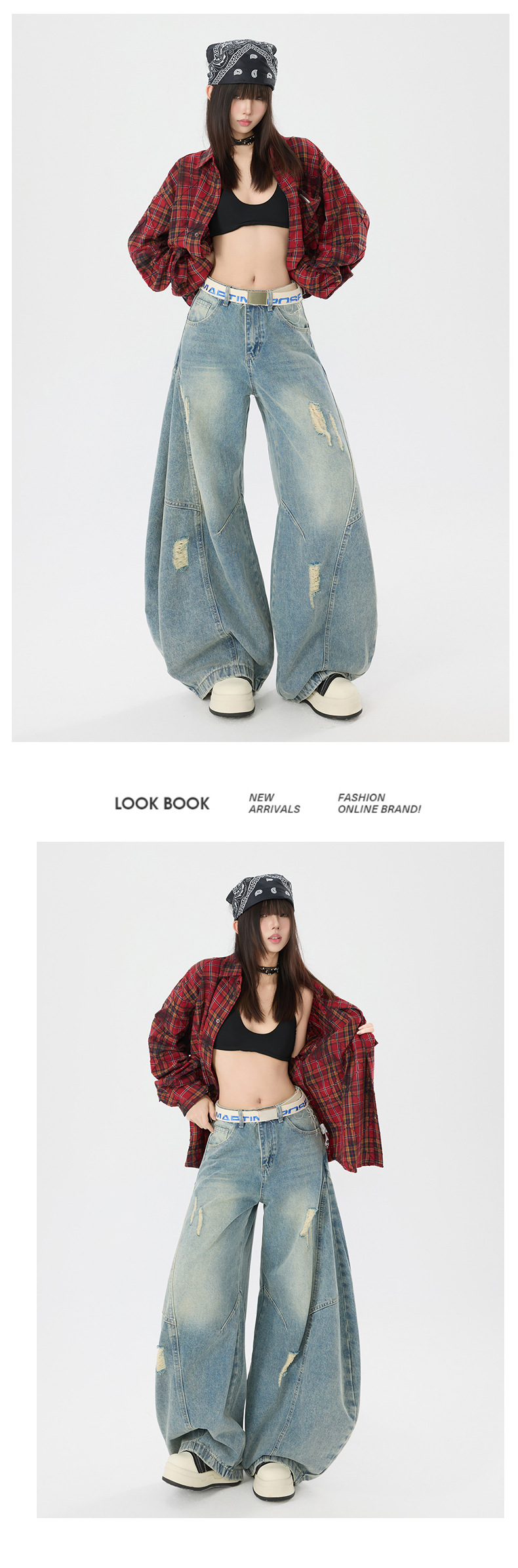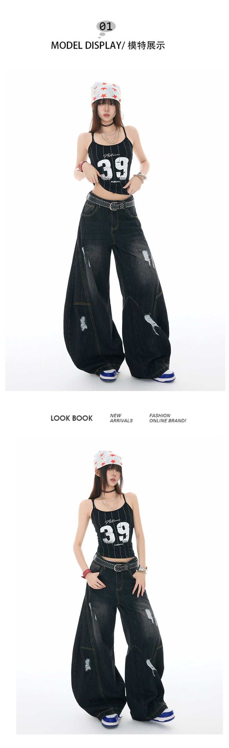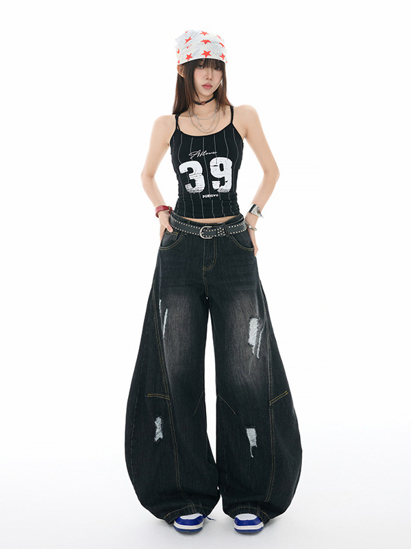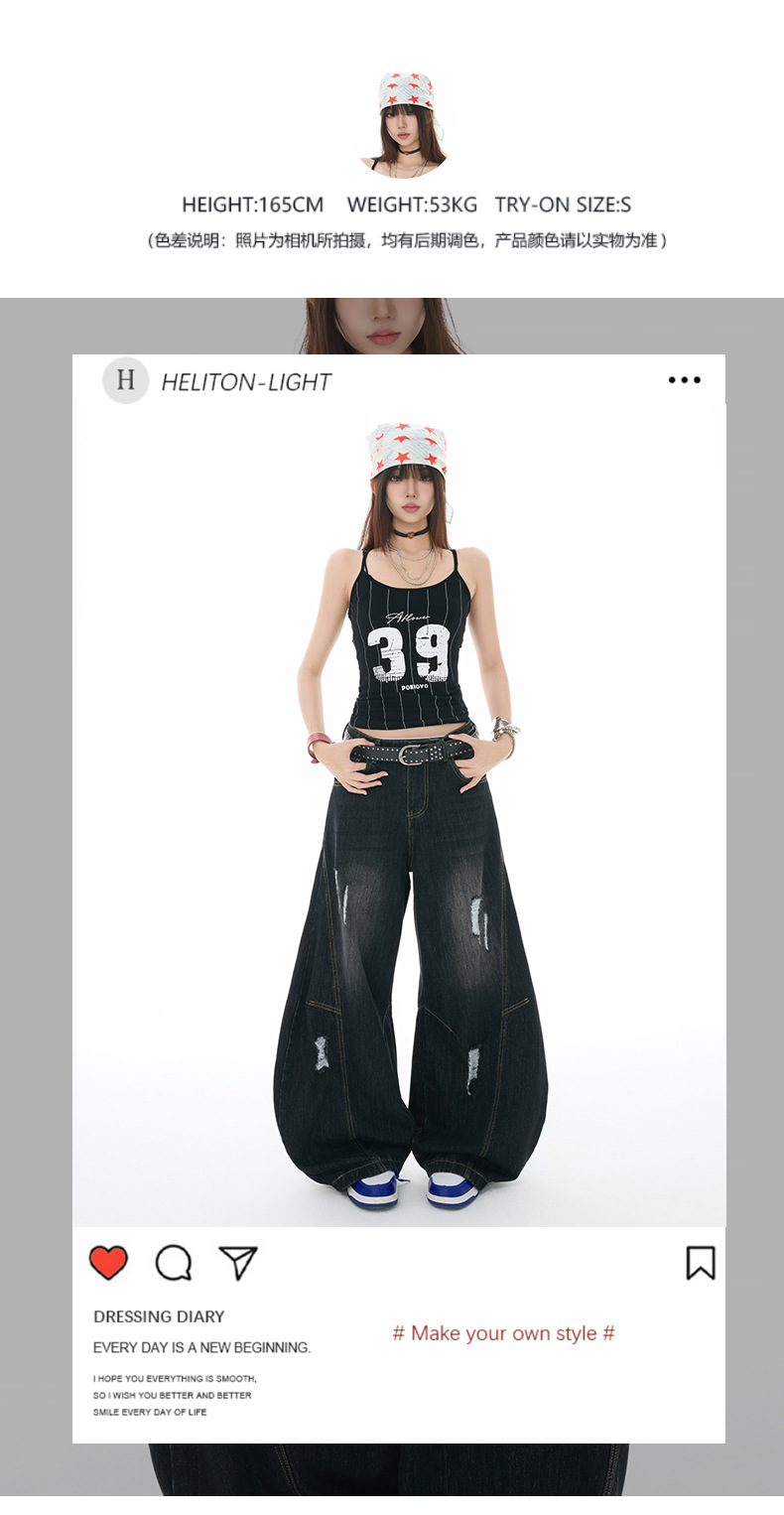 오렌지 실크 여성복 # 아메리칸 스타일 빈티지 프로필 시미타 청바지 남성과 여성의 느슨한 빈티지 해체 된 와이드 레그 바지스토어 가기
