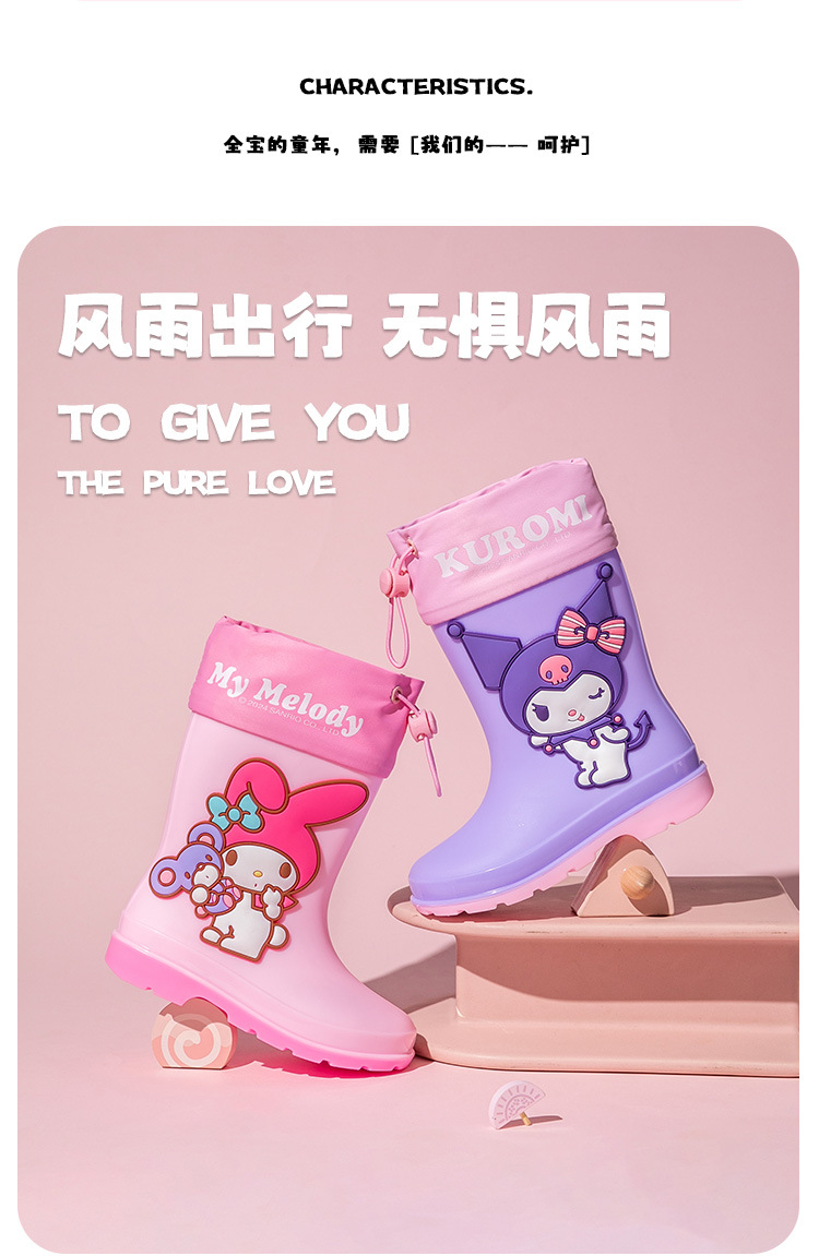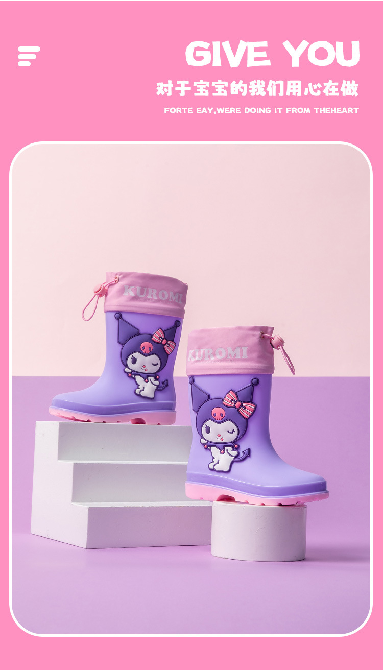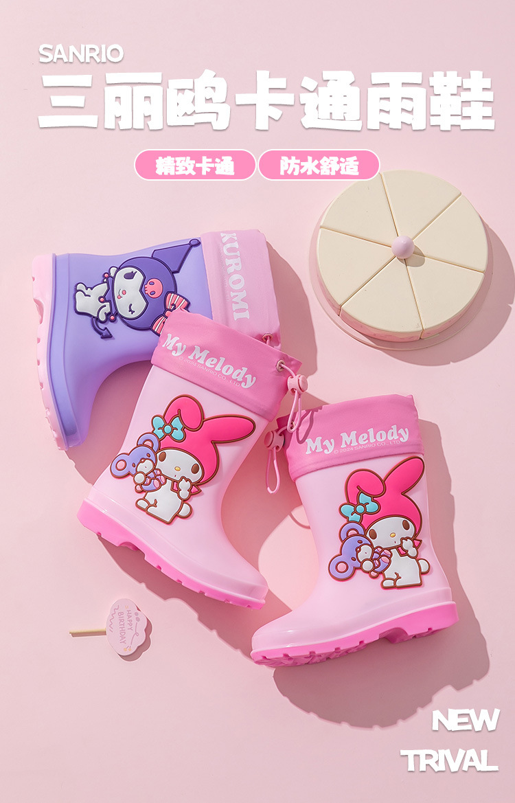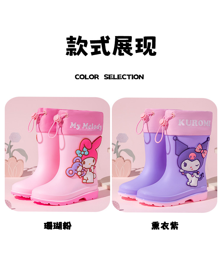 졸라매는 끈 산리오 쿠로미 멜로디 어린이 장화 소녀 유치원 초등학생 만화 워터 부츠