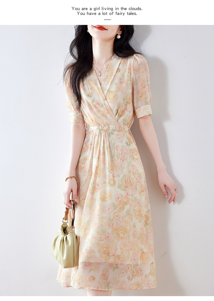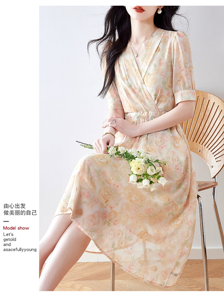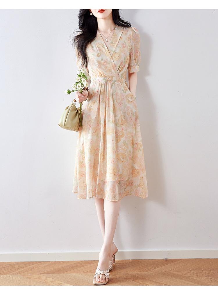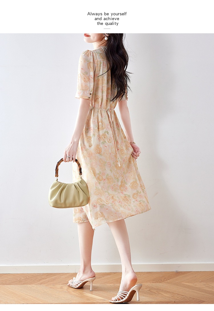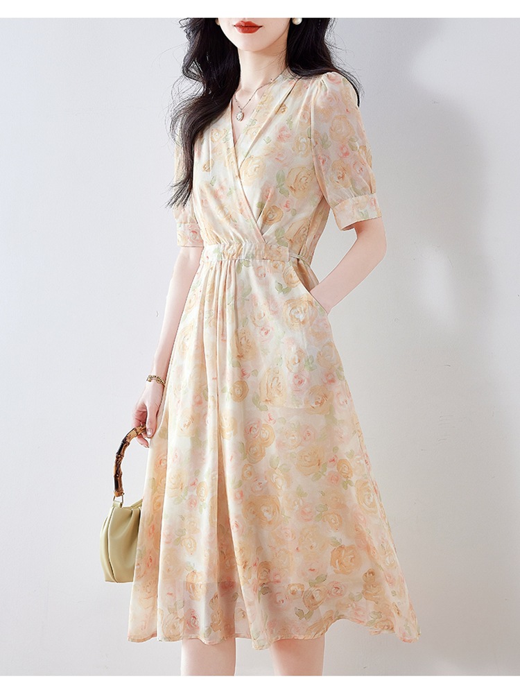 꽃 원피스 2025 여름 새로운 여성복 허리 작은 우아한 차 브레이크 프랑스 긴 치마스토어 가기