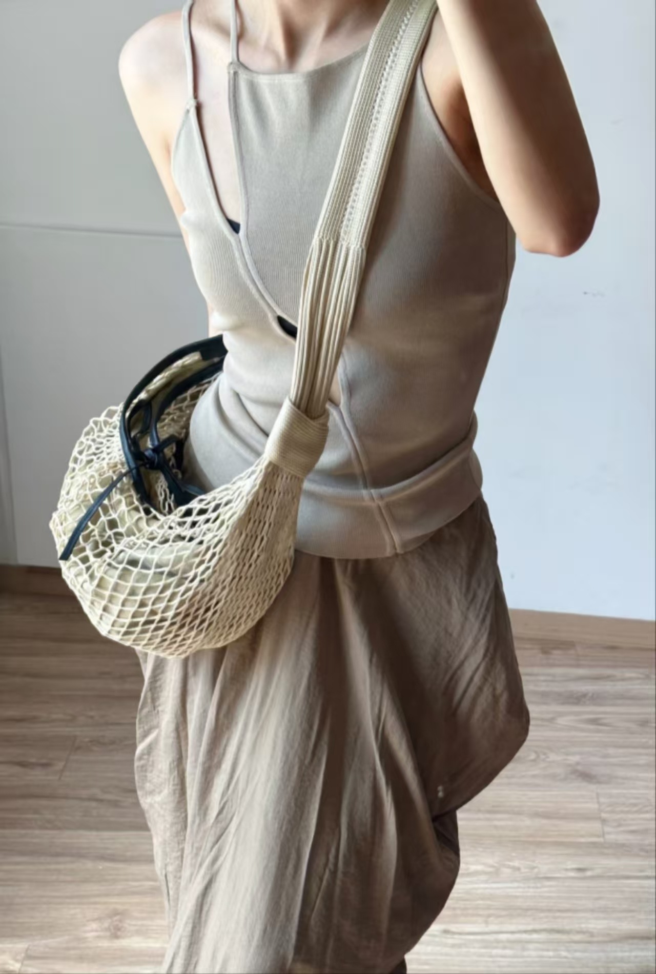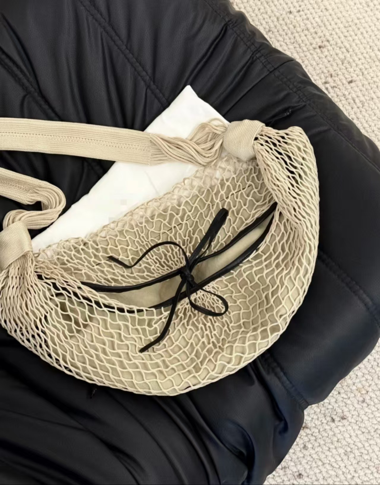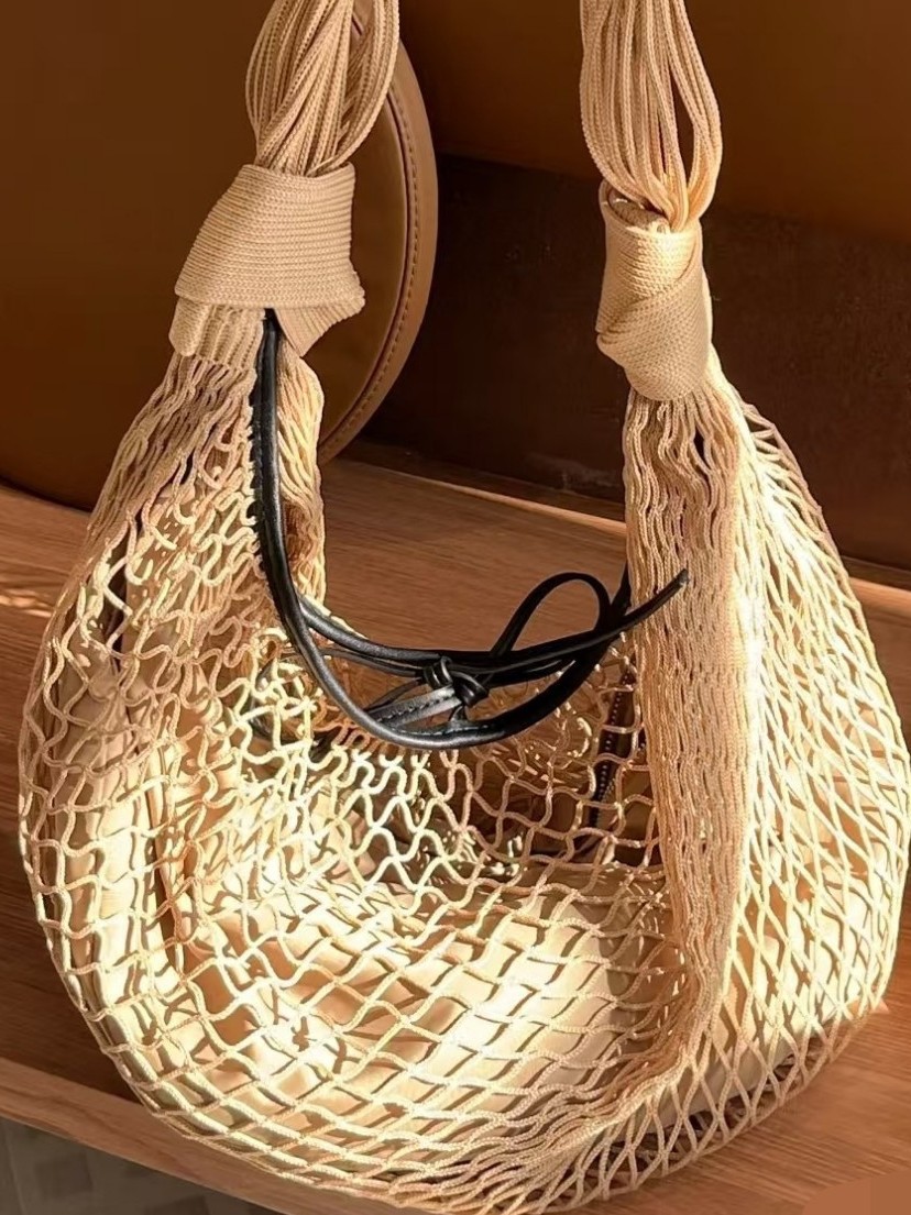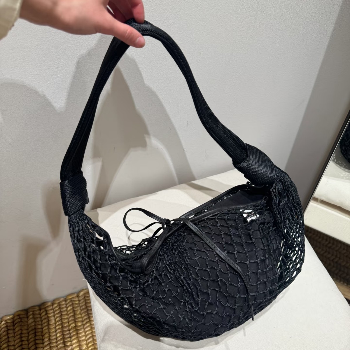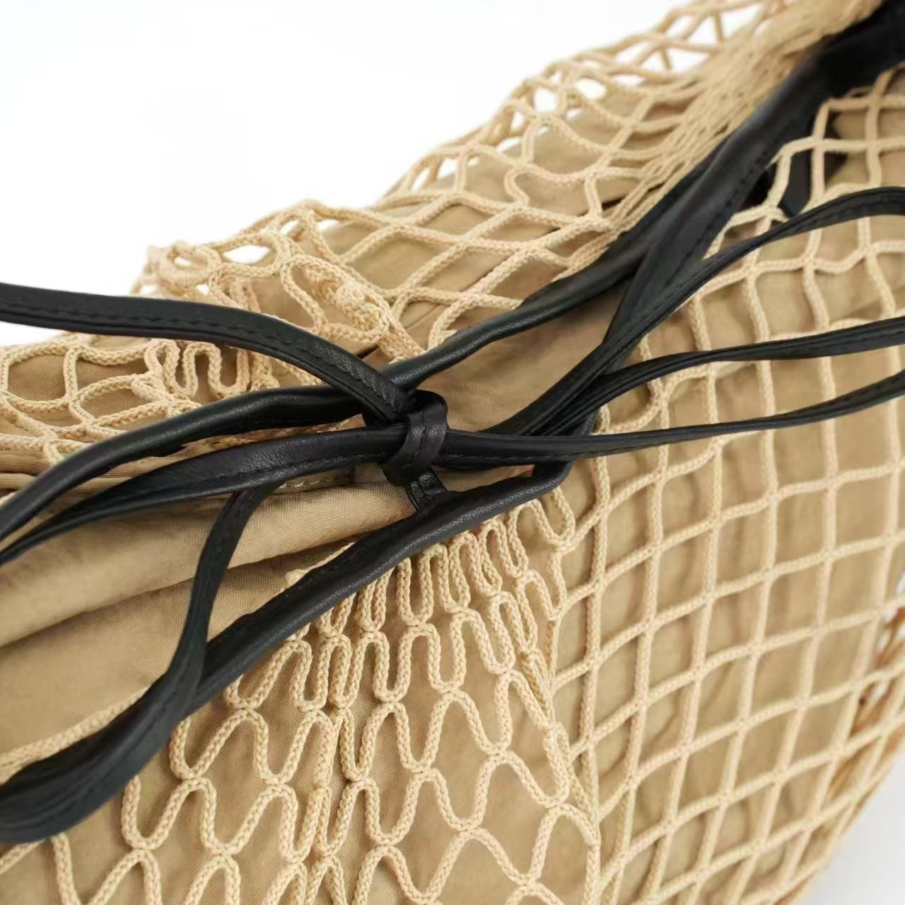 Haute Couture 2025 새로운 인터넷 연예인 Fishnet Pocket Horn Show 패션 다목적 게으른 대비 색상 짠 원 숄더 크로스 바디 여성용 가방