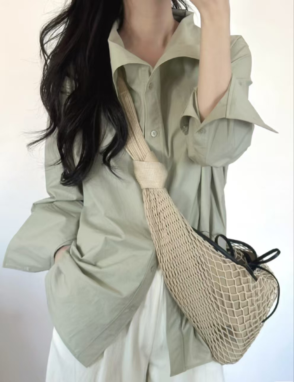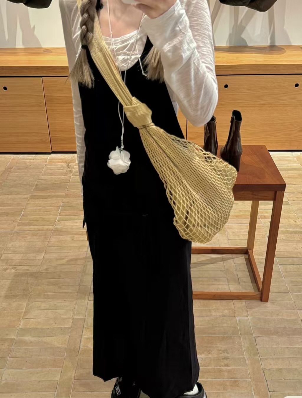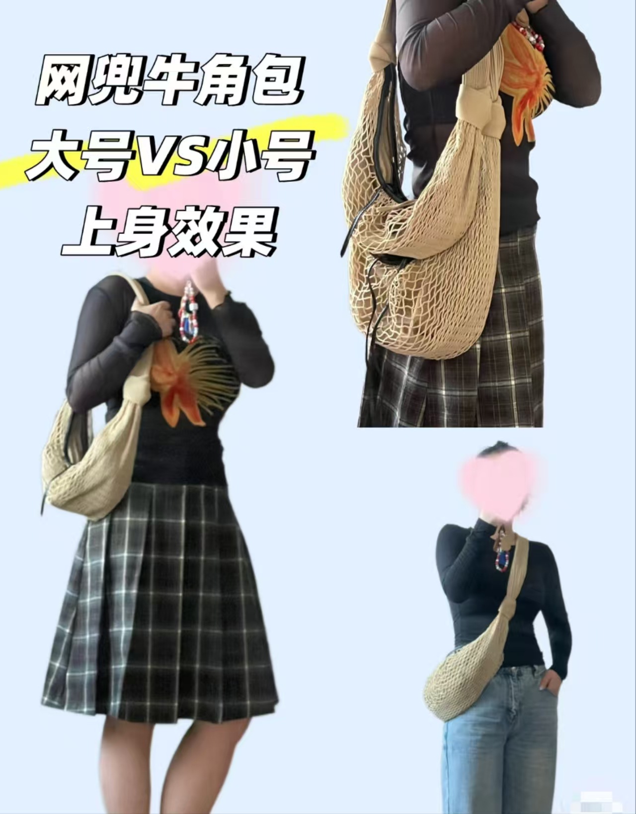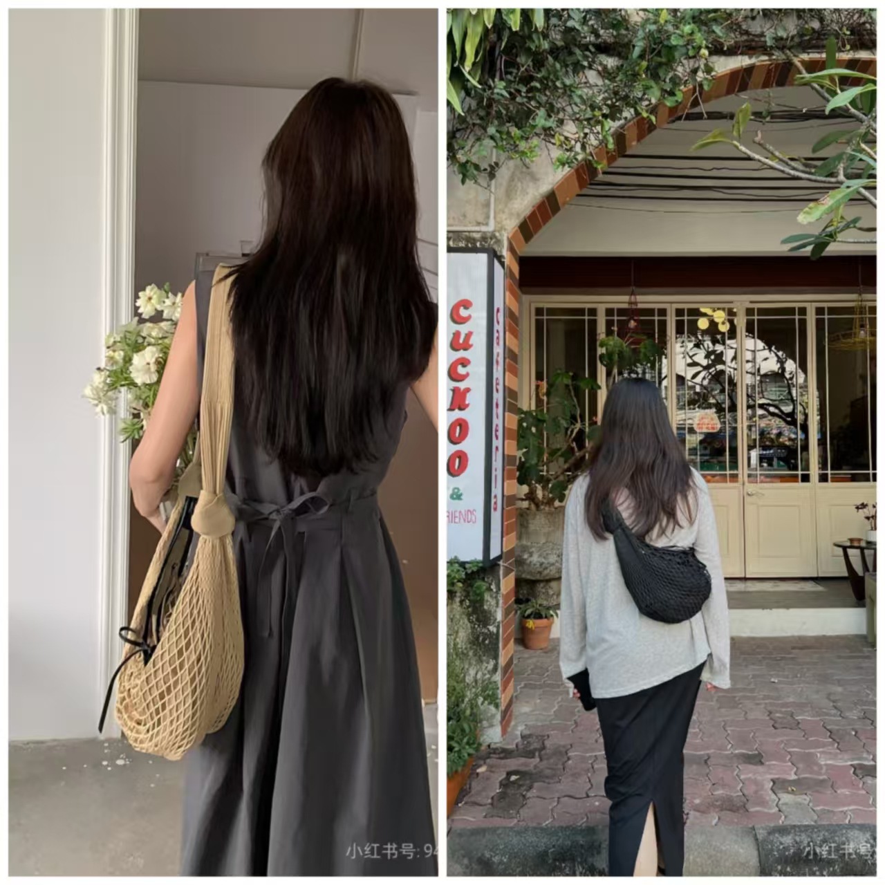 Haute Couture 2025 새로운 인터넷 연예인 Fishnet Pocket Horn Show 패션 다목적 게으른 대비 색상 짠 원 숄더 크로스 바디 여성용 가방