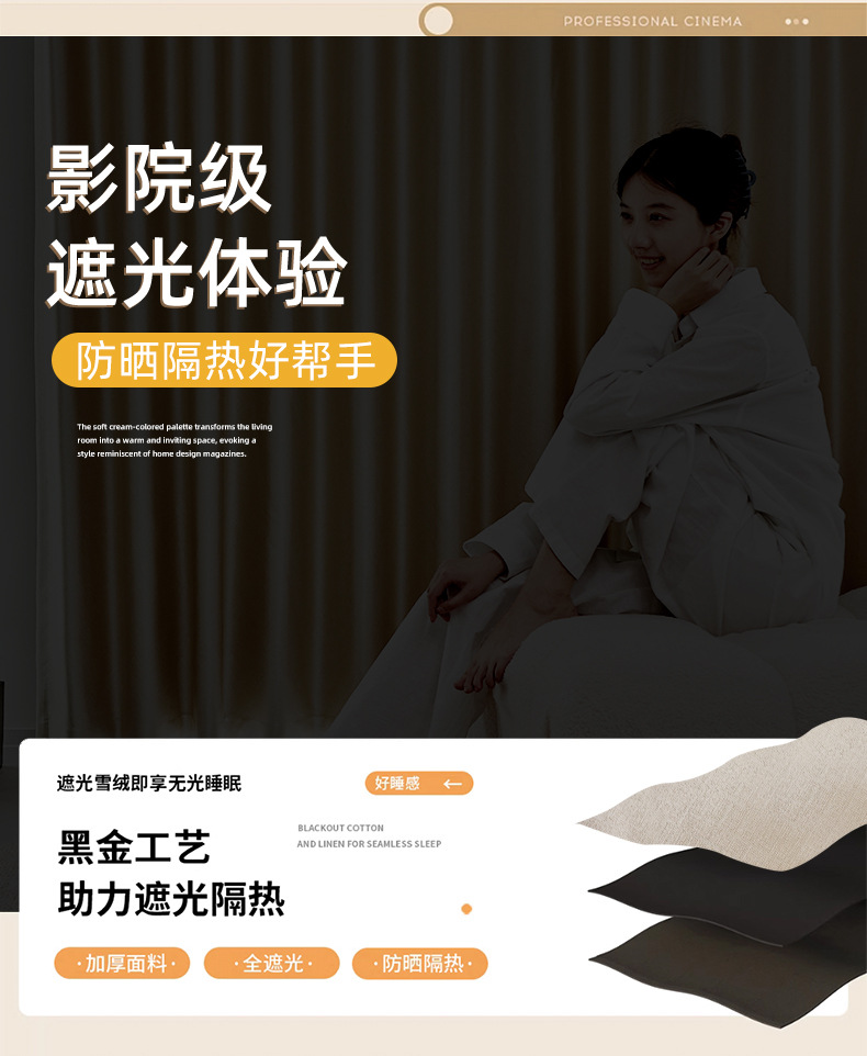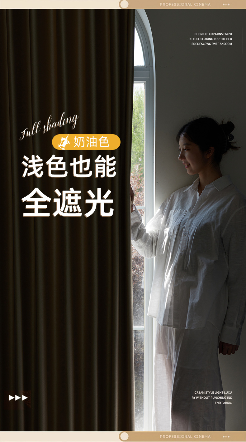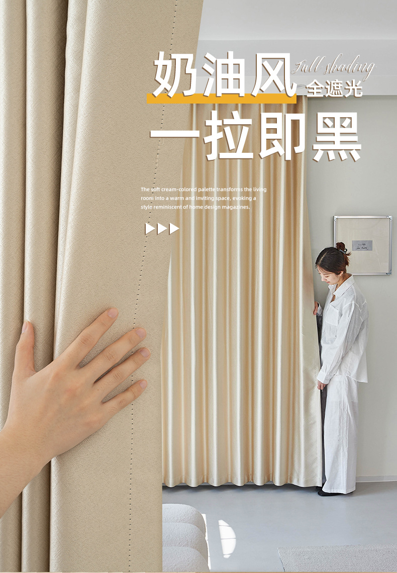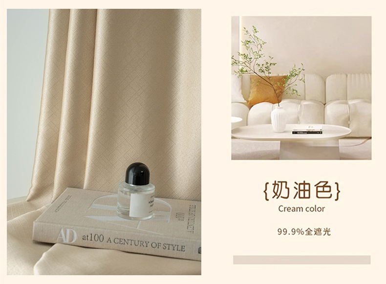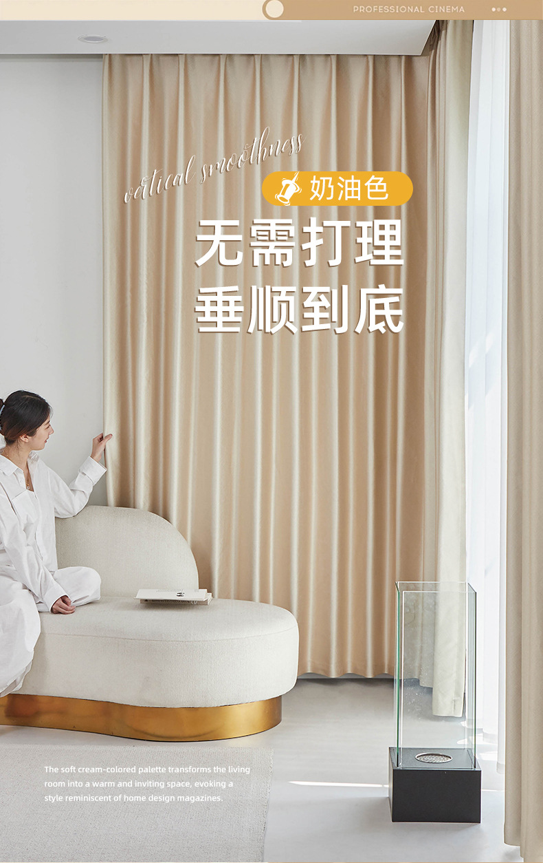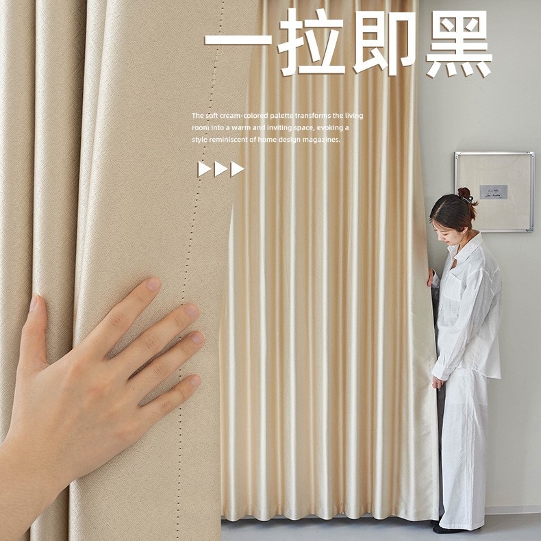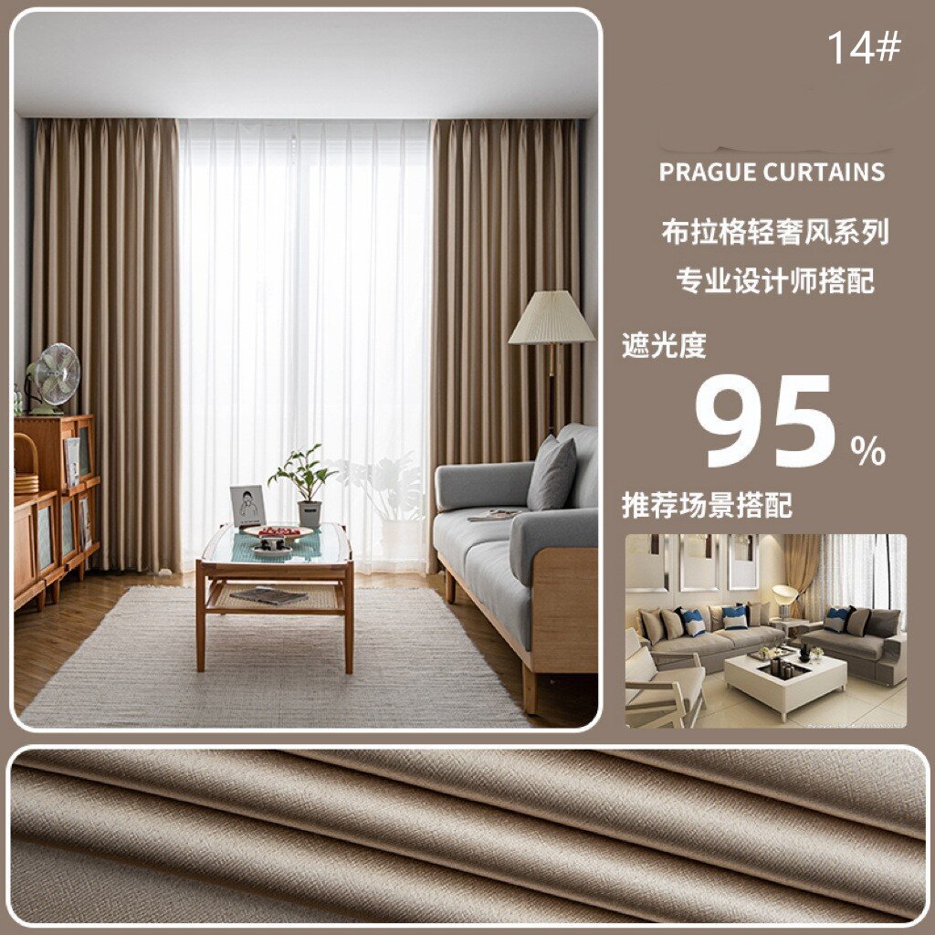 프라하 크림 스타일 블랙 실크 강력한 차광 커튼 펀치없는 베드룸 창 2025 태양 보호 및 단열 아파트 호텔 완제품스토어 가기