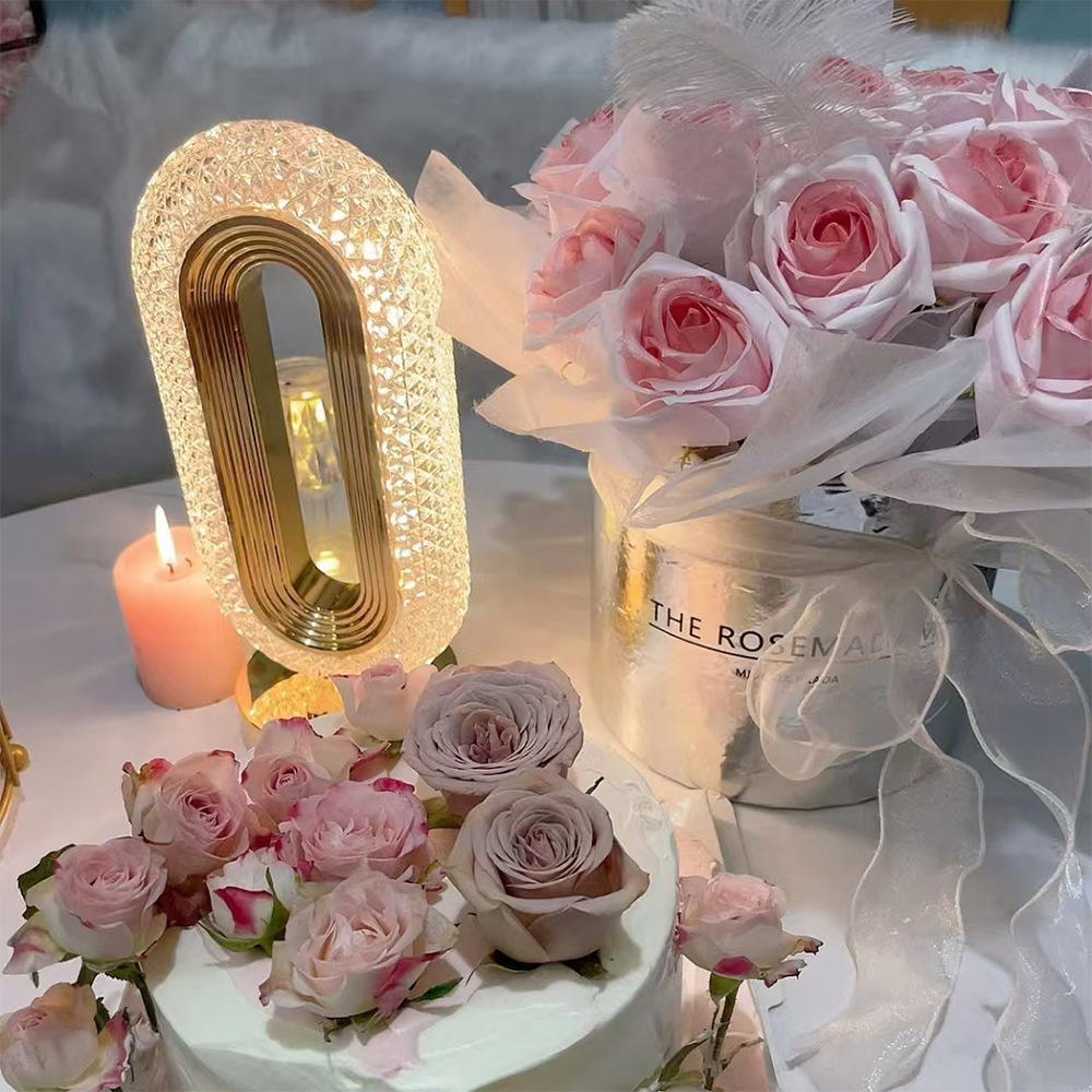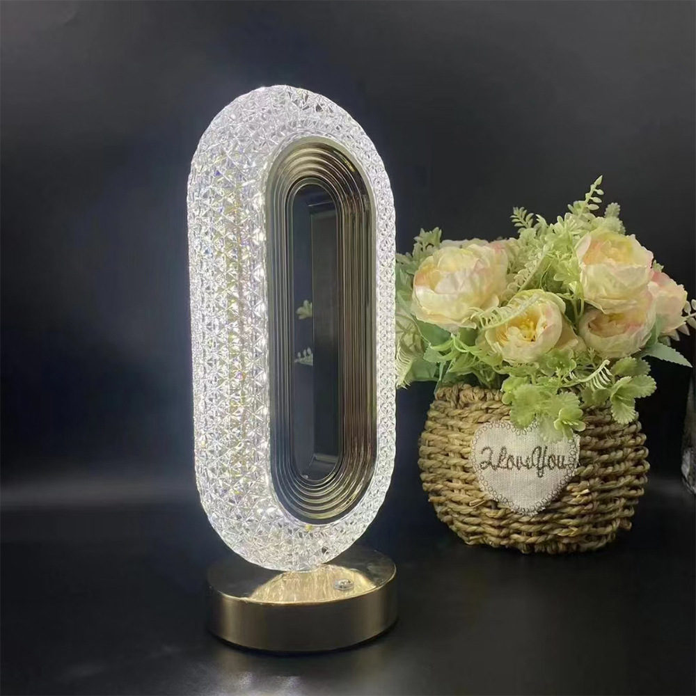 크로스보더 충전식 크리스탈 테이블 램프, 고급스러운 침실 침대 옆 분위기 조명, 유럽풍의 창의적인 터치 러너 디자인, 밝기 조절 가능