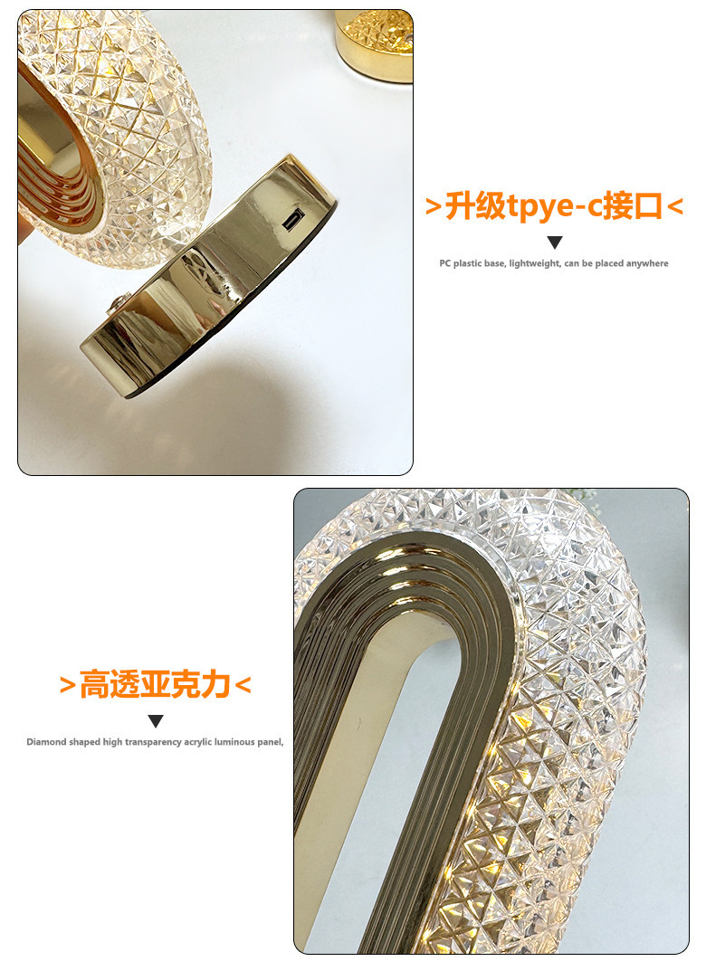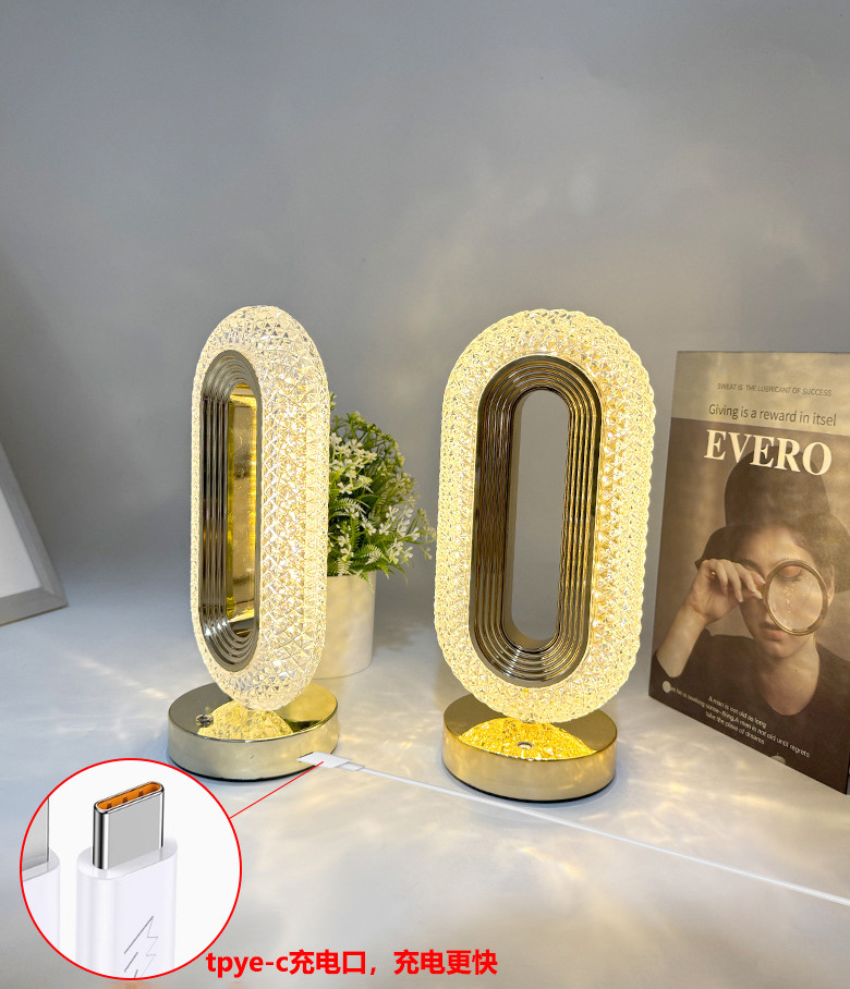 크로스보더 충전식 크리스탈 테이블 램프, 고급스러운 침실 침대 옆 분위기 조명, 유럽풍의 창의적인 터치 러너 디자인, 밝기 조절 가능스토어 가기