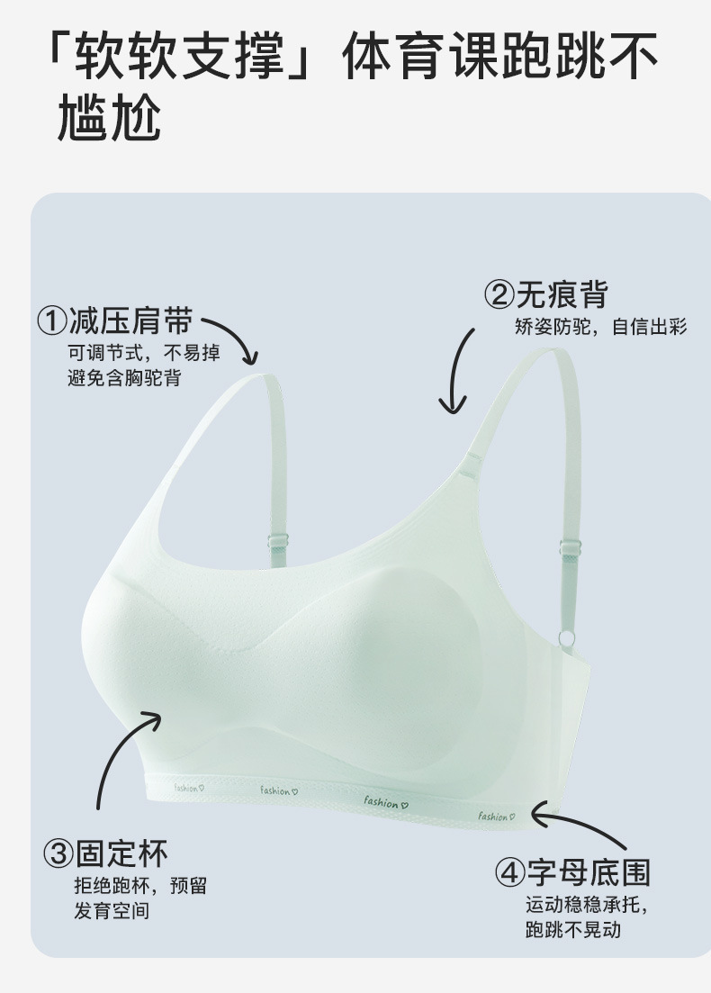 여아용 브래지어 12세 2단계 중학교 발달기 여아 속옷 얇은 고정 컵 여아 조끼스토어 가기