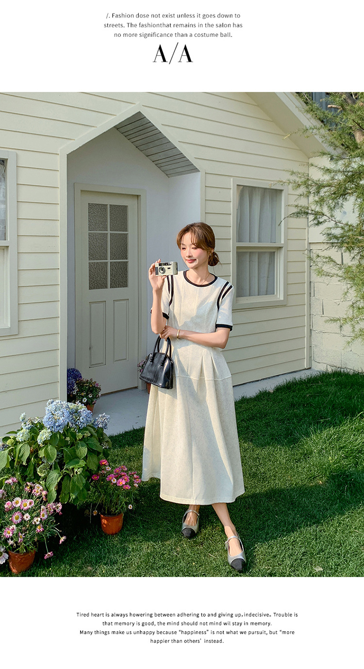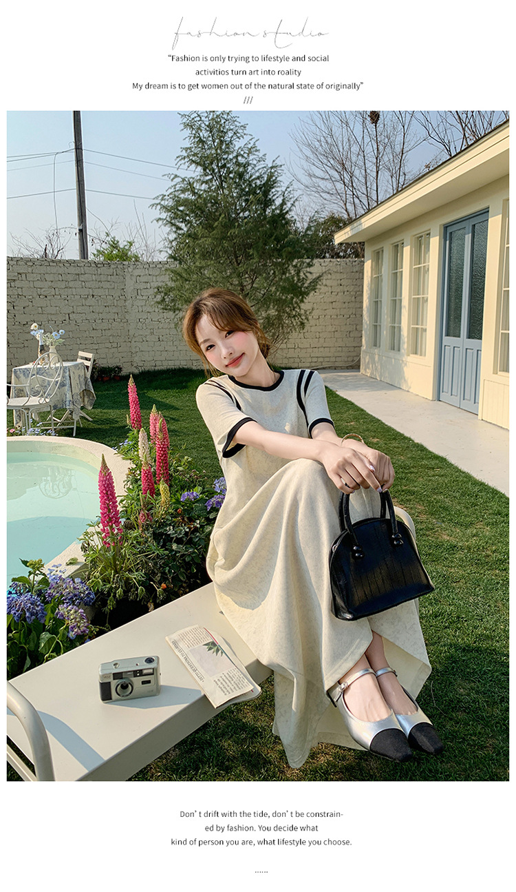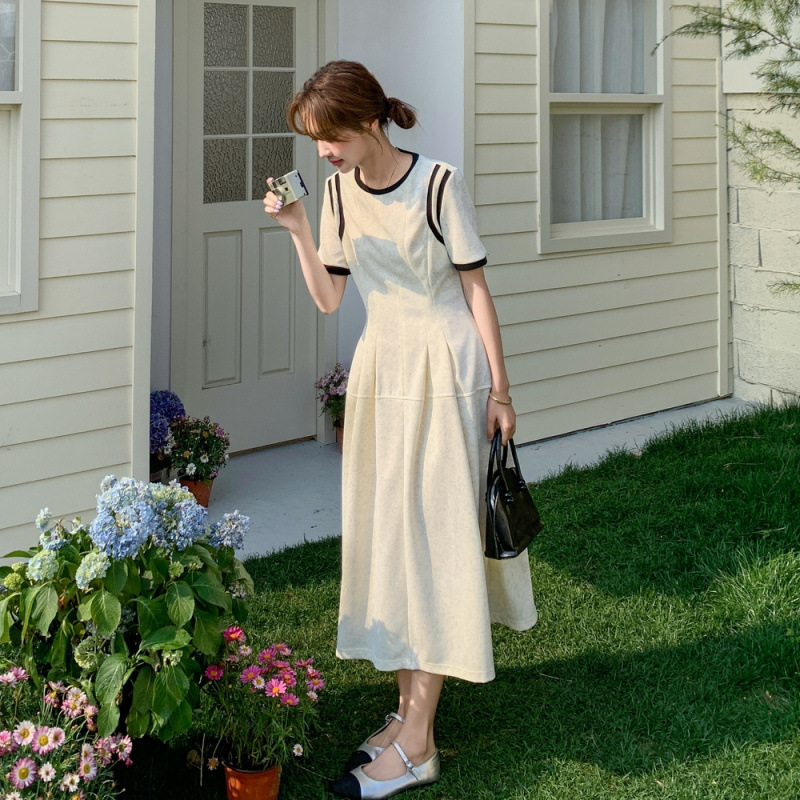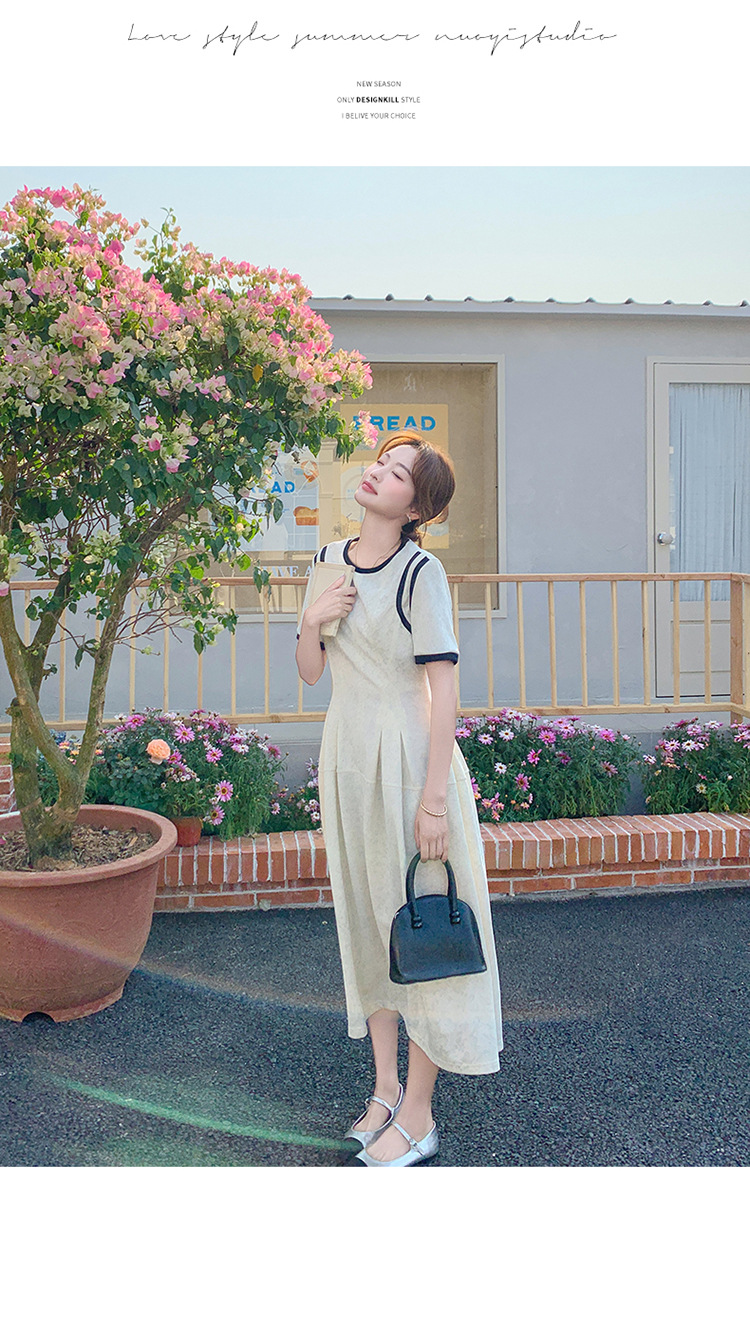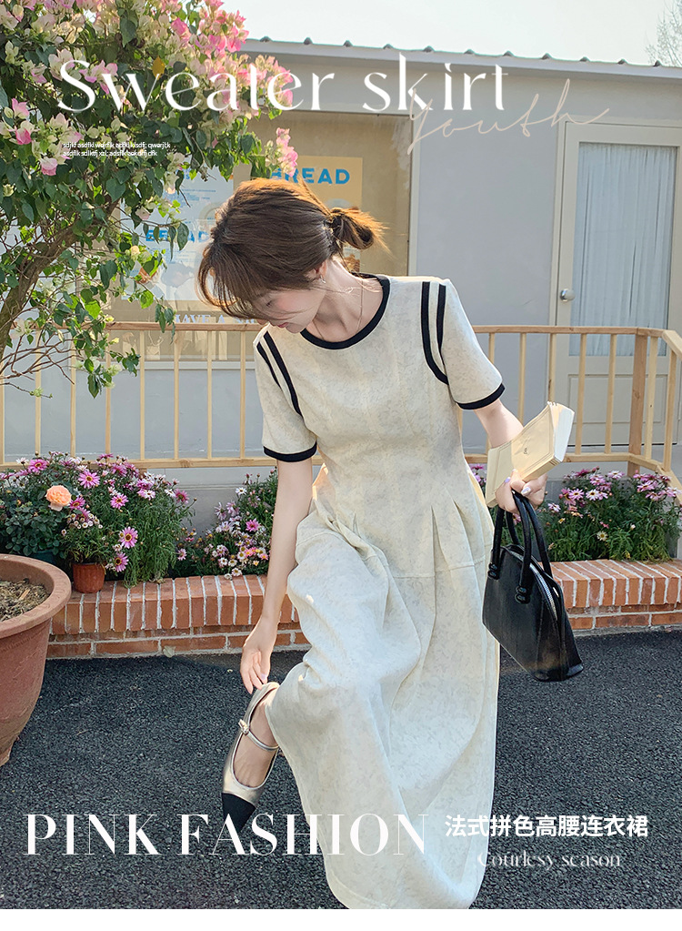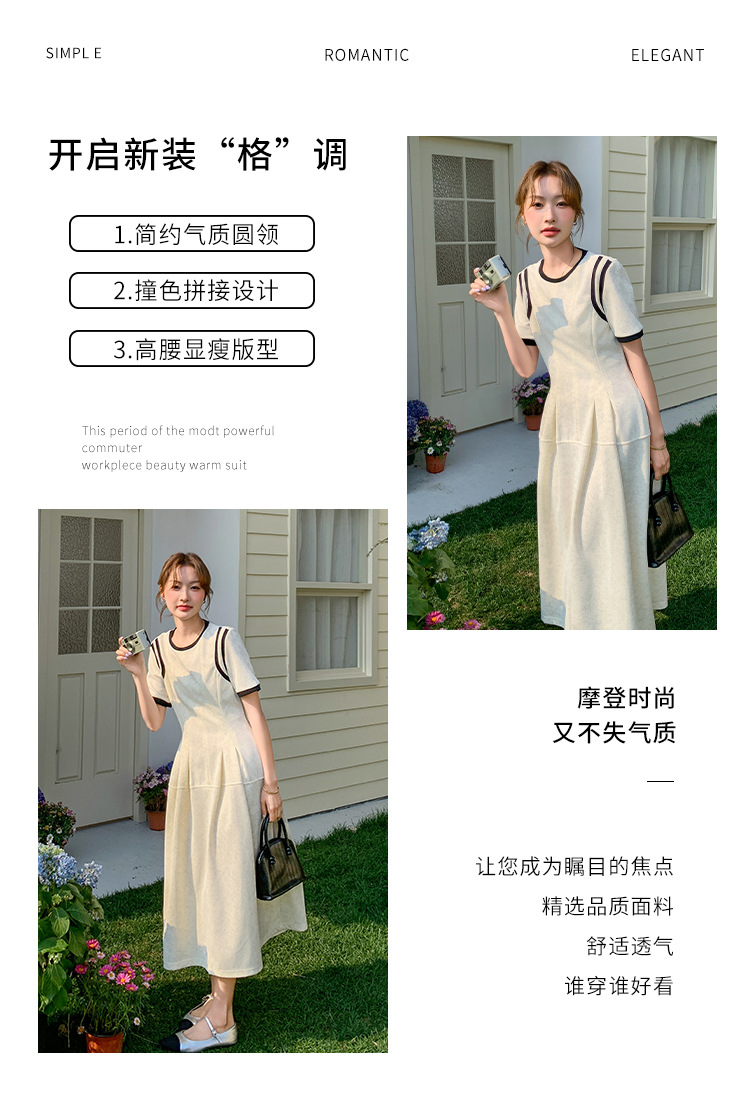 리얼 샷 콘트라스트 컬러 스티칭 원피스 여성 2025 년 여름 새로운 프랑스 스타일 멋진 멋진 디자인 센스 슬림 우아한 긴 원피스스토어 가기