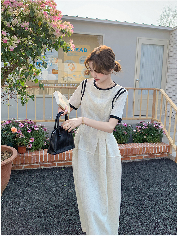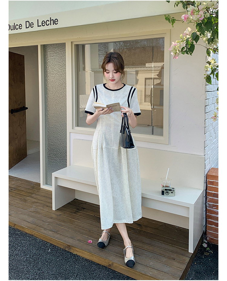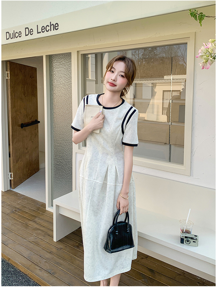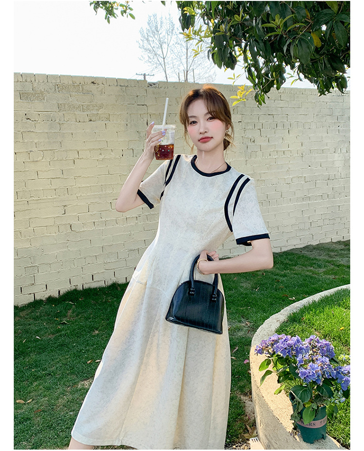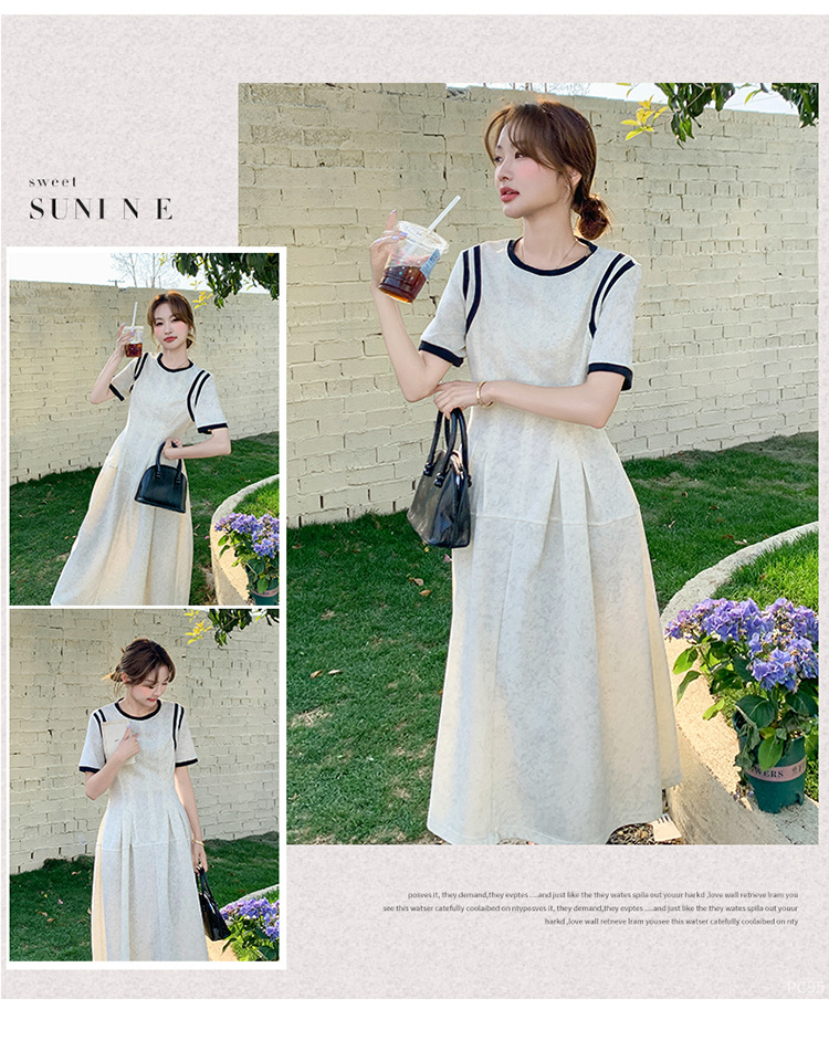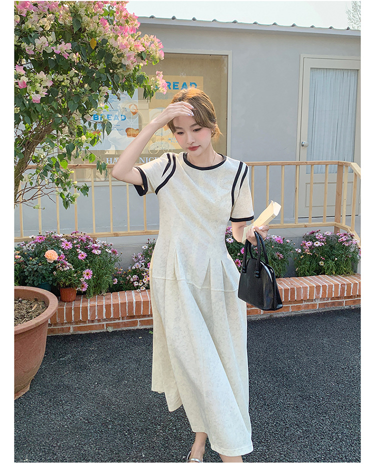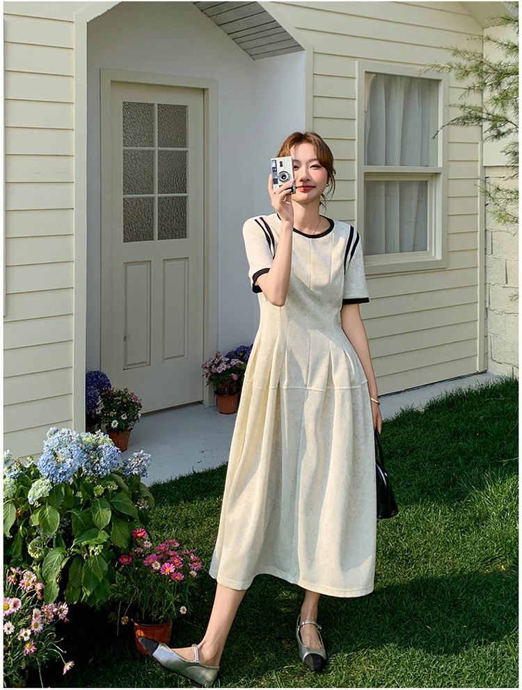 리얼 샷 콘트라스트 컬러 스티칭 원피스 여성 2025 년 여름 새로운 프랑스 스타일 멋진 멋진 디자인 센스 슬림 우아한 긴 원피스스토어 가기