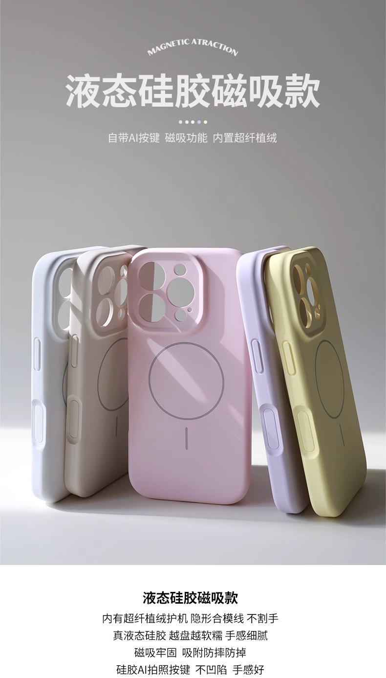 iPhone 17 Pro Max 휴대폰 케이스에 적합한 자석 액상 실리콘 케이스, 카메라 버튼 일체형, Apple 16 풀커버
