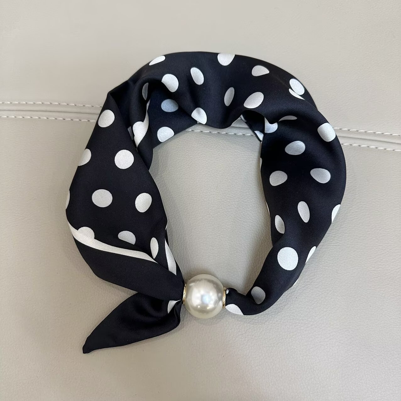 새로운 목 보호 진주 자기 버클 작은 실크 스카프 여성의 여름 간단한 올 매치 긴 장식 펜던트 목걸이 스카프스토어 가기