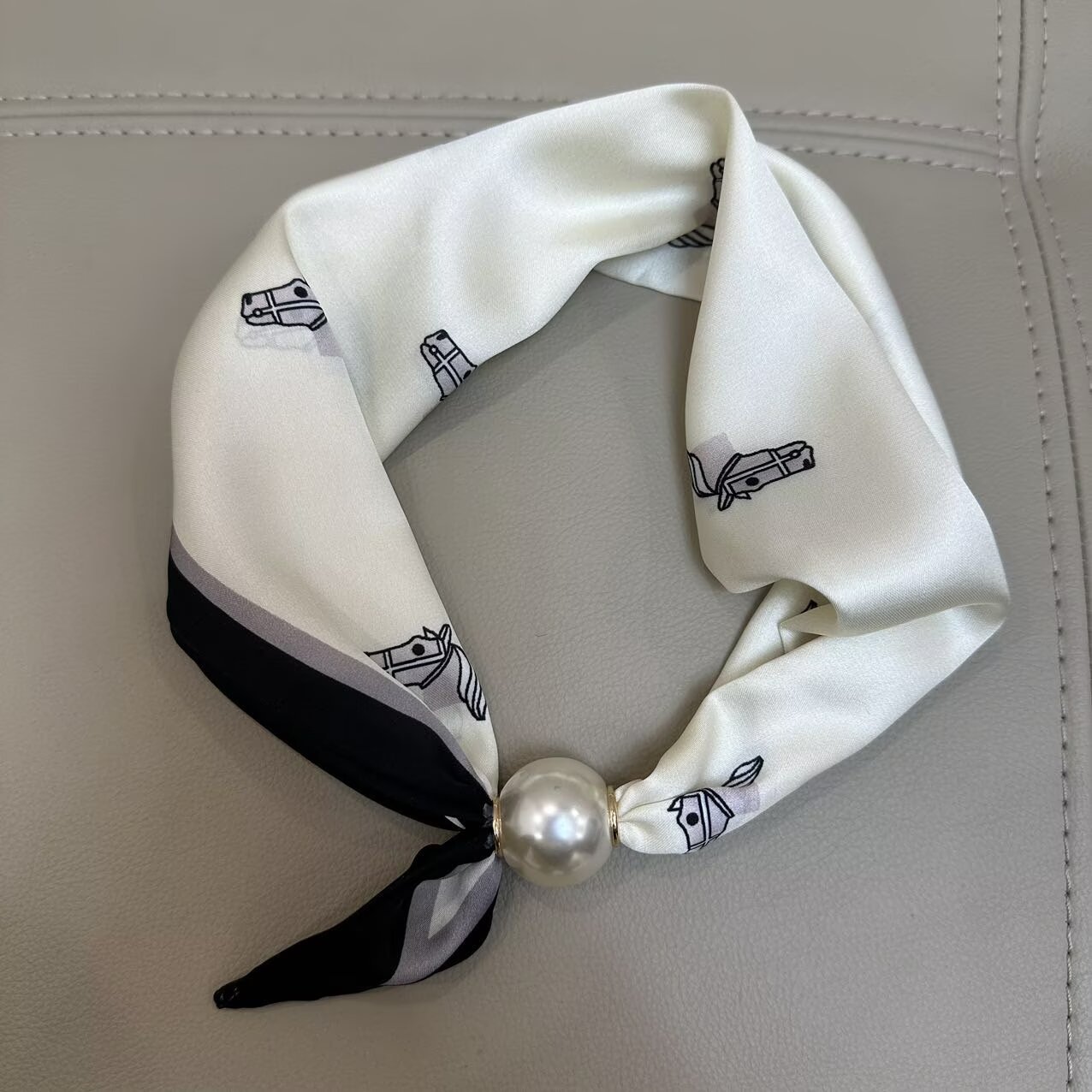 새로운 목 보호 진주 자기 버클 작은 실크 스카프 여성의 여름 간단한 올 매치 긴 장식 펜던트 목걸이 스카프