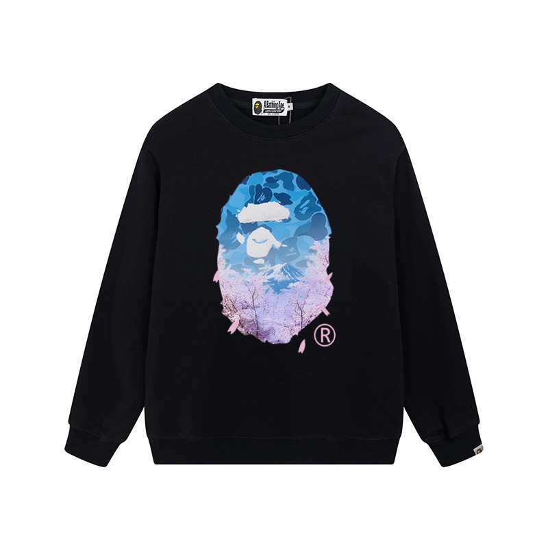 국경 간 대외 무역 도매 트렌디 브랜드 BAPE 상어 원숭이 머리 라운드 넥 스웨트 셔츠 드롭 배송 가을, 겨울 테리 스웨트 셔츠