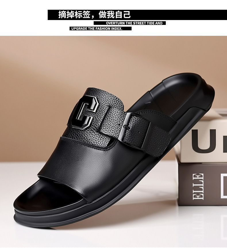 슬리퍼 남성 야외 여름 부드러운 바닥 패션 슬리퍼 2025 새로운 캐주얼 한 단어 비치 가죽 슬리퍼스토어 가기