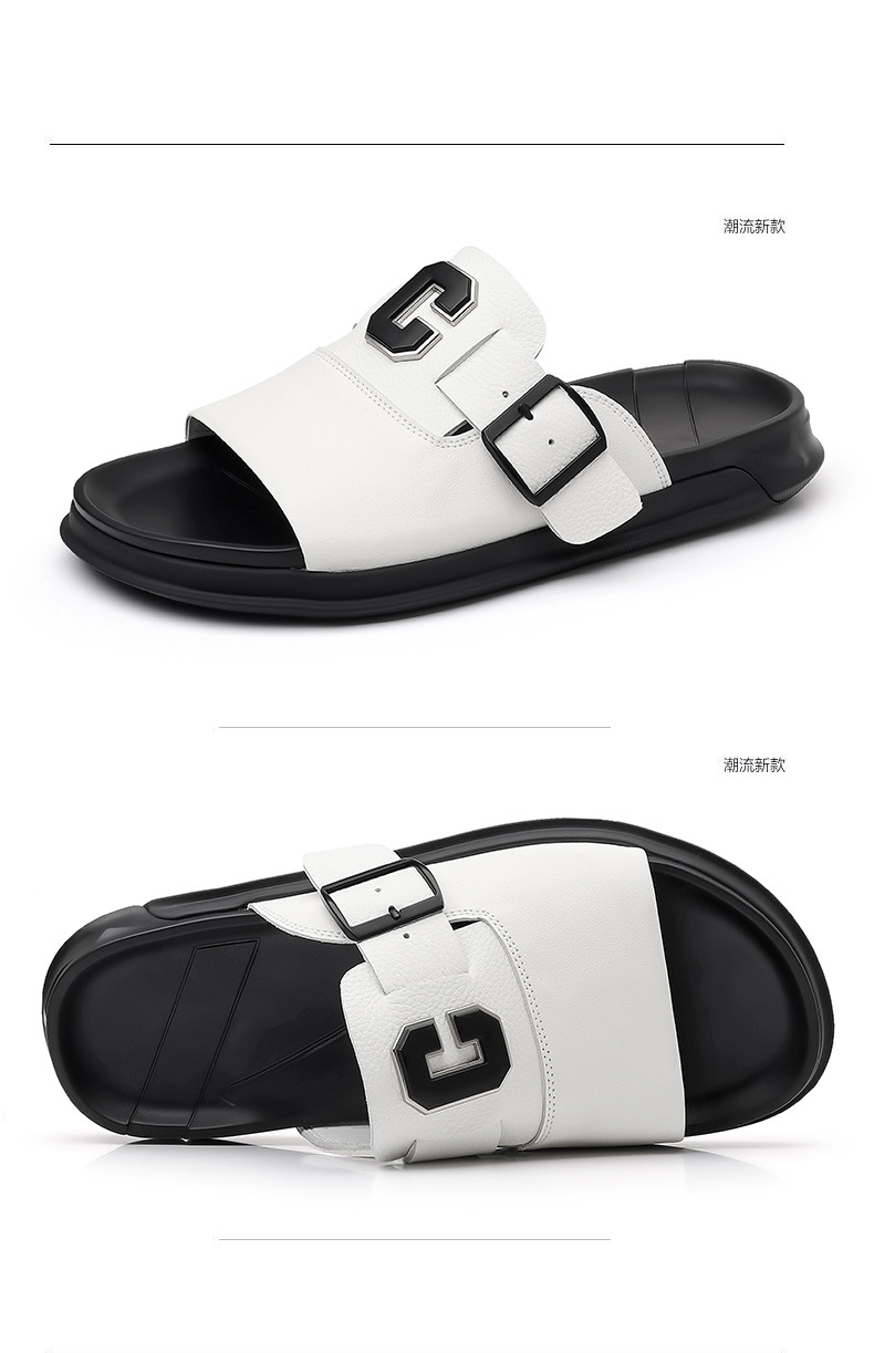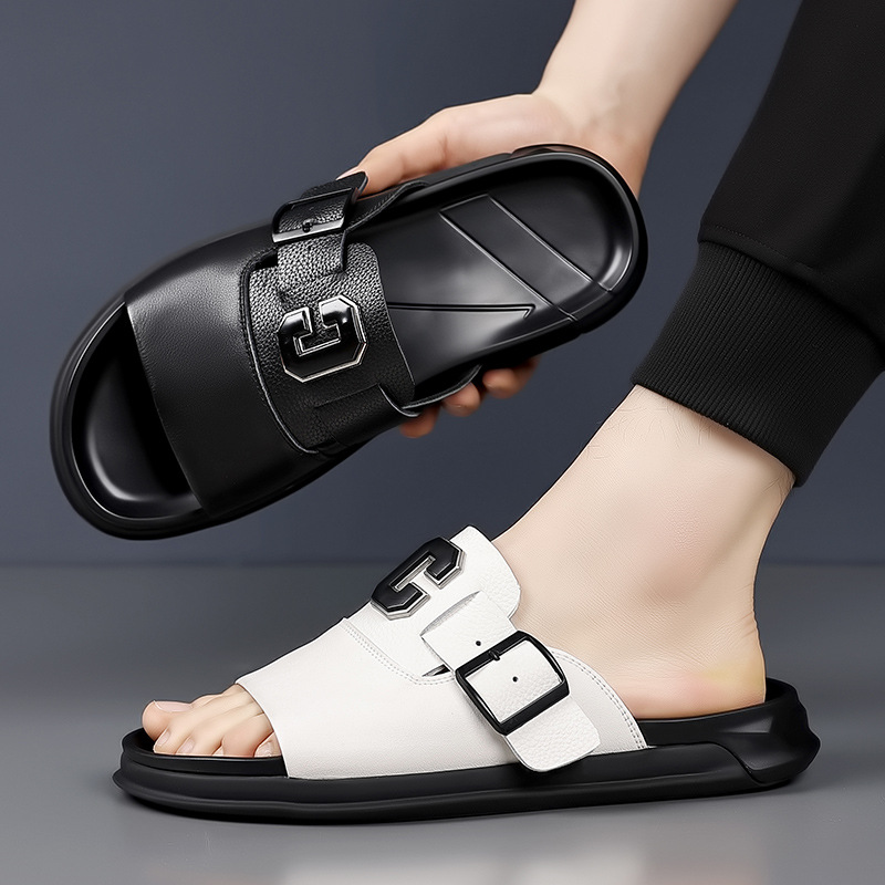 슬리퍼 남성 야외 여름 부드러운 바닥 패션 슬리퍼 2025 새로운 캐주얼 한 단어 비치 가죽 슬리퍼