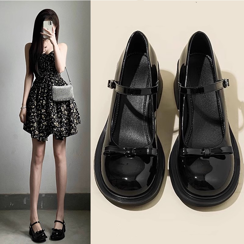 프랑스 활 메리 제인 작은 가죽 신발 여성의 2025 봄과 여름 새로운 패션 올매치 레트로 하이힐 얕은 입 싱글 레이어 신발스토어 가기