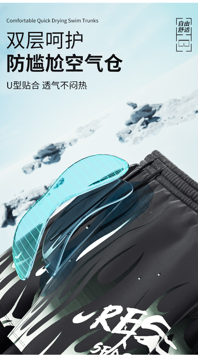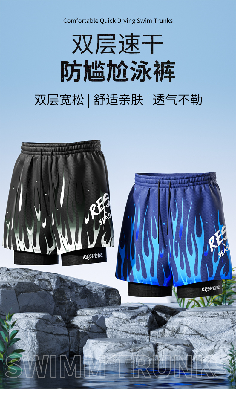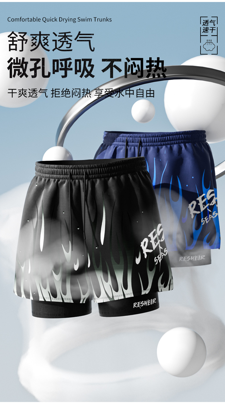 남성용 크로스보더 수영 팬티 더블 레이어 프린트 패션 캐주얼 얇은 대형 통기성 야외 장비 제조 업체 도매스토어 가기