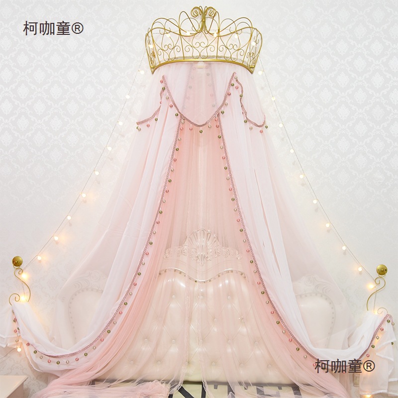공주 침대 장식 공주 방 침대 커튼 침대 옆 사계절 천장 침대 커튼 거즈 커튼 더블 레이어 소녀 Metabo