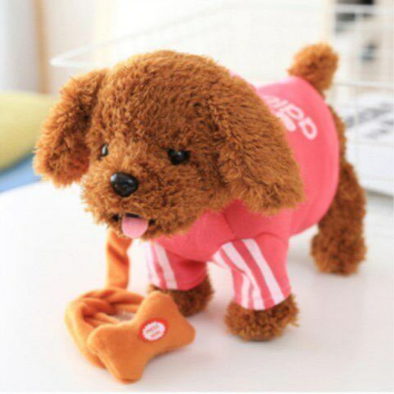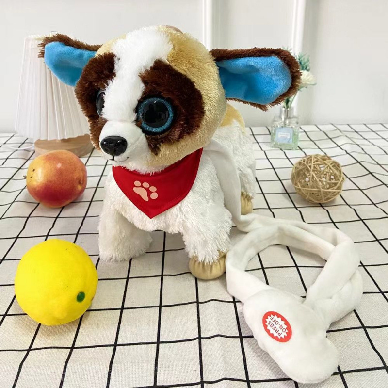 어린이 전기 가죽 끈 플러시 테디 장난감 개는 걷고 노래하고 이야기를 할 수 있습니다. 볼륨 조절이 가능한 시뮬레이션 로봇 개