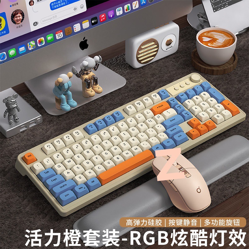 • [오피스세트] 생기 넘치는 오렌지 레인보우 라이트 + 무소음 마우스
