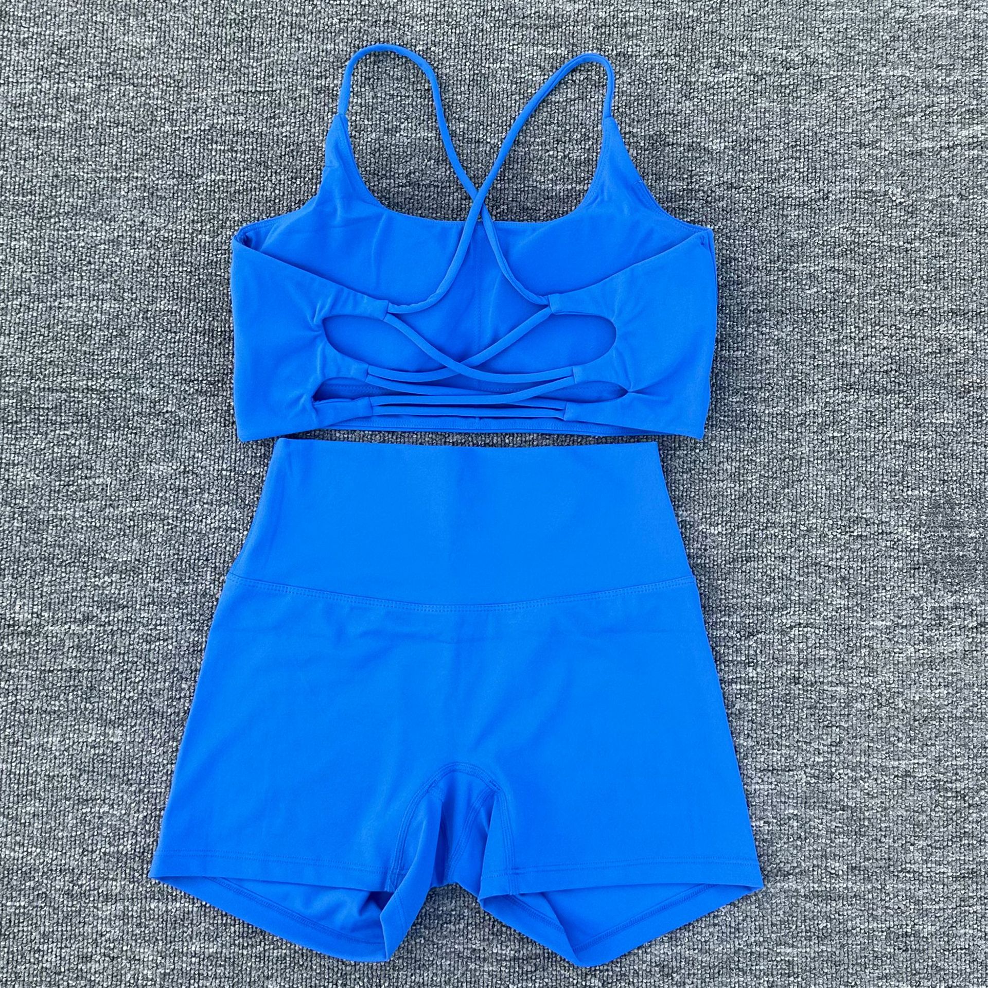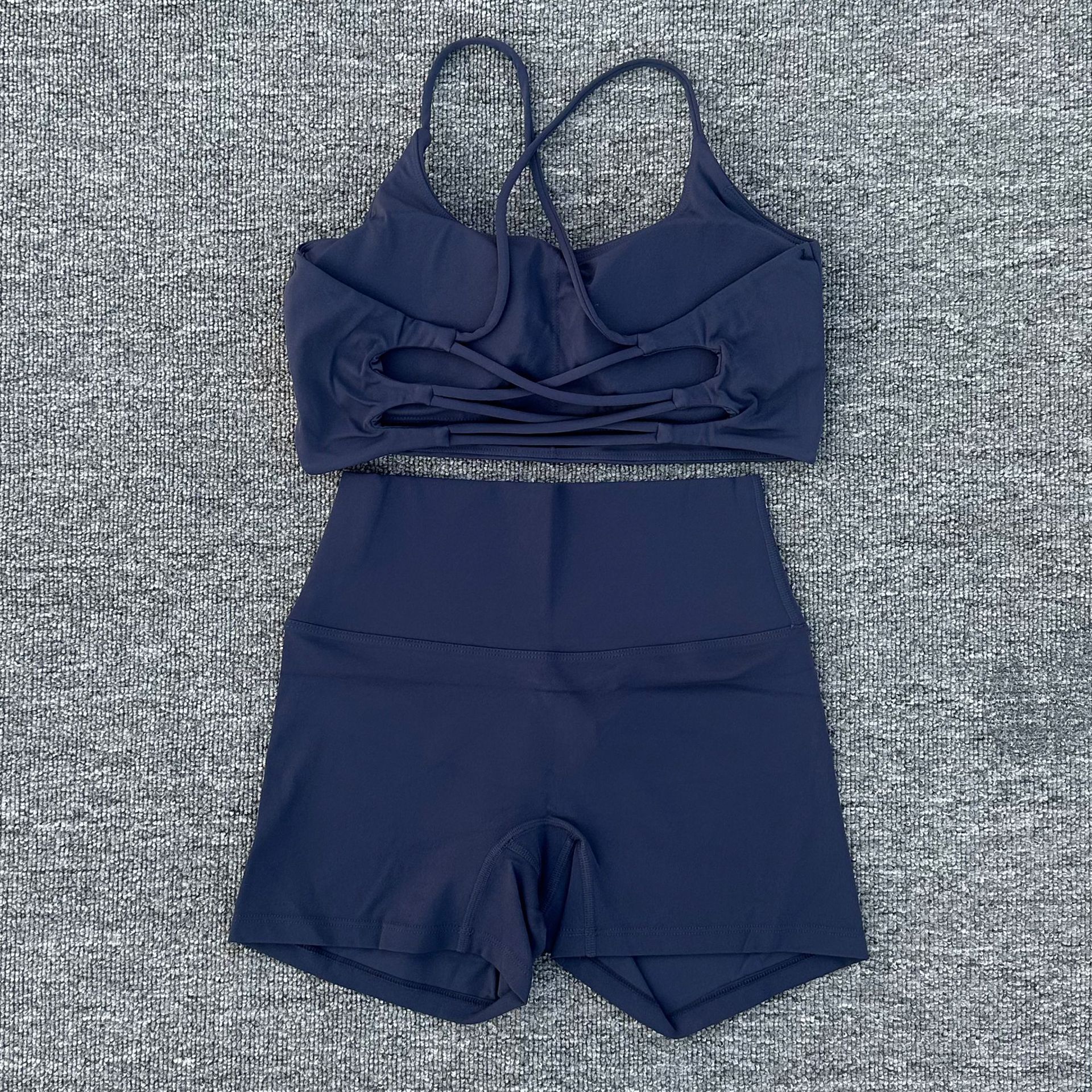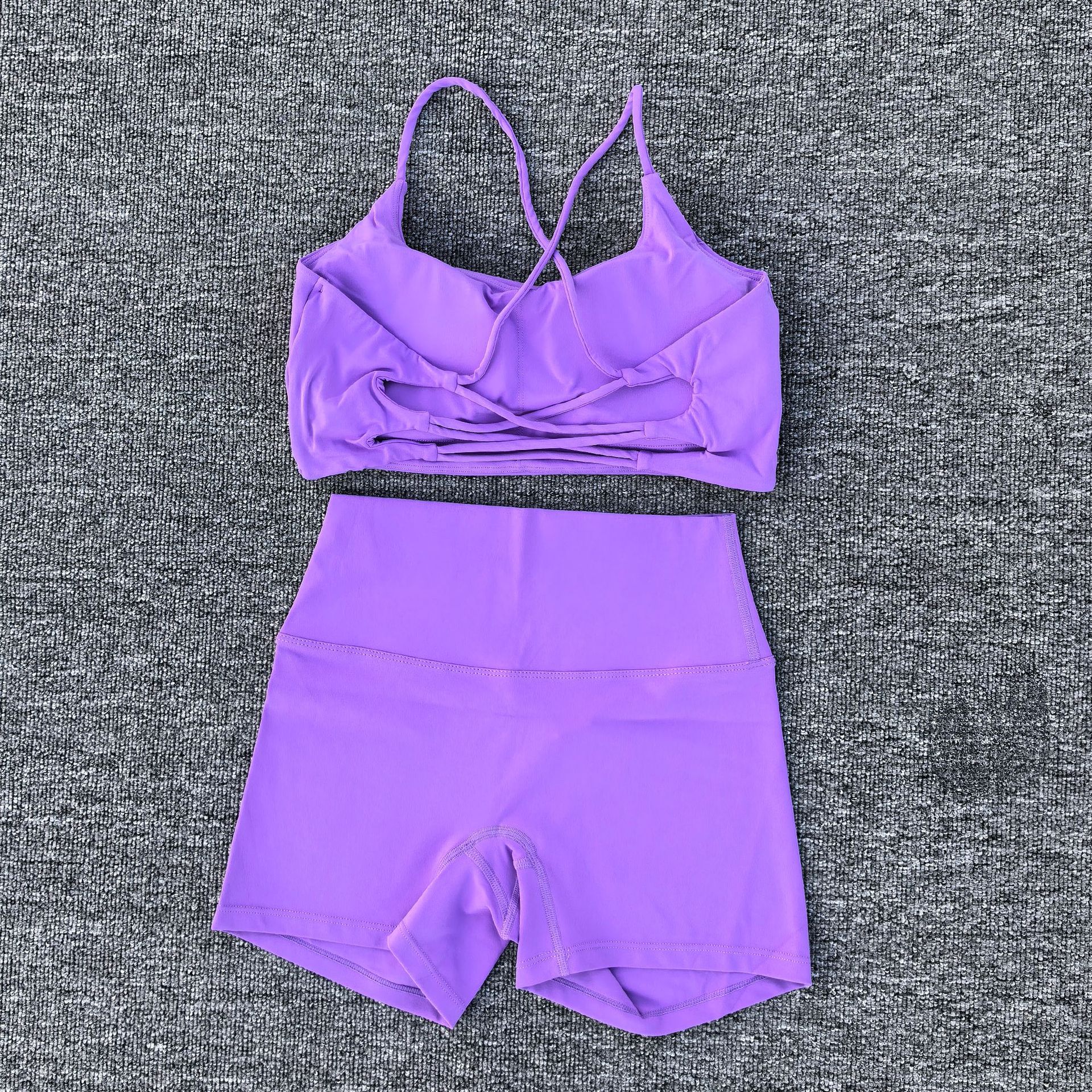 벌거 벗은 얇은 어깨 끈 크로스 스포츠 브라 요가 반바지 세트 여성 스포츠 속옷 피트니스 브래지어 조끼