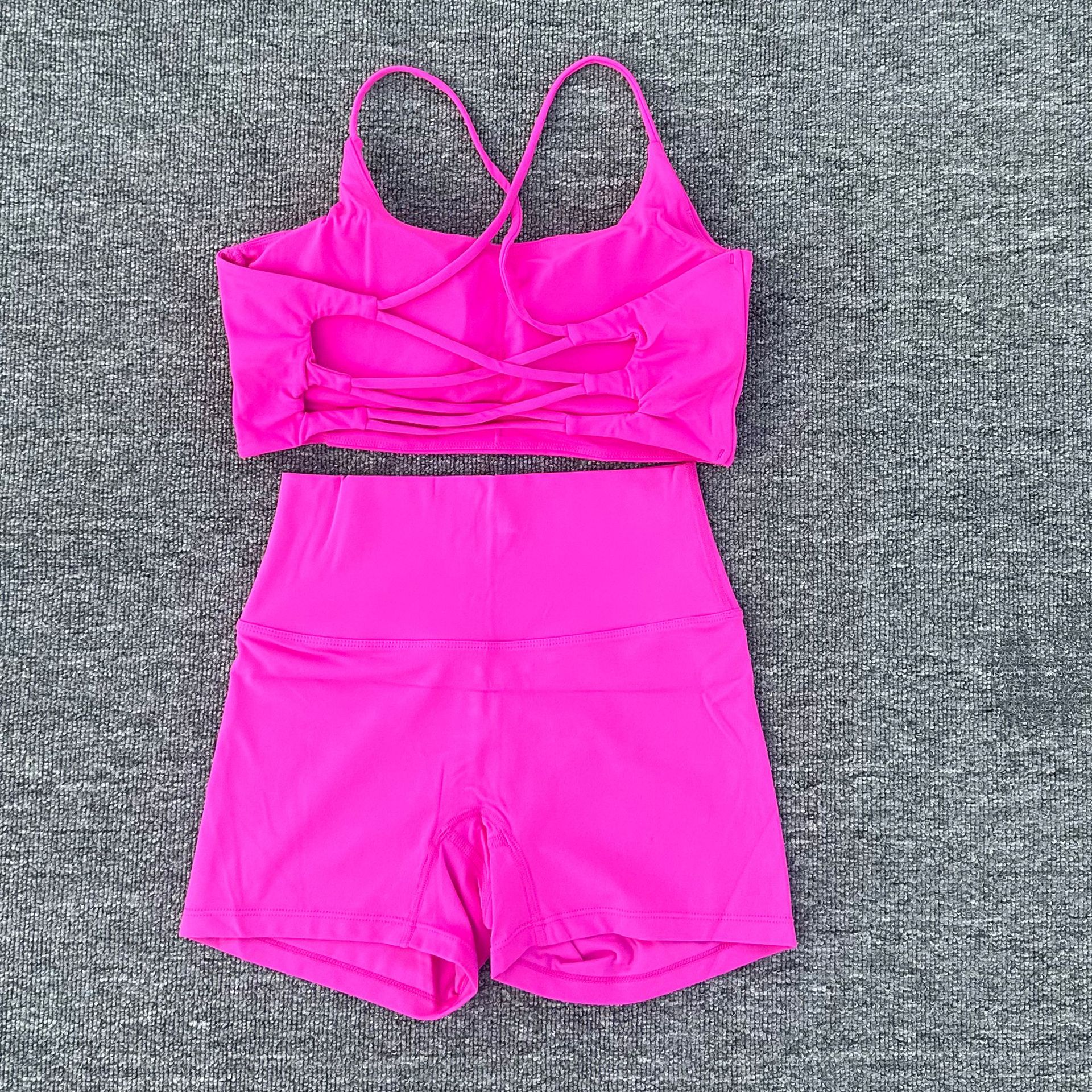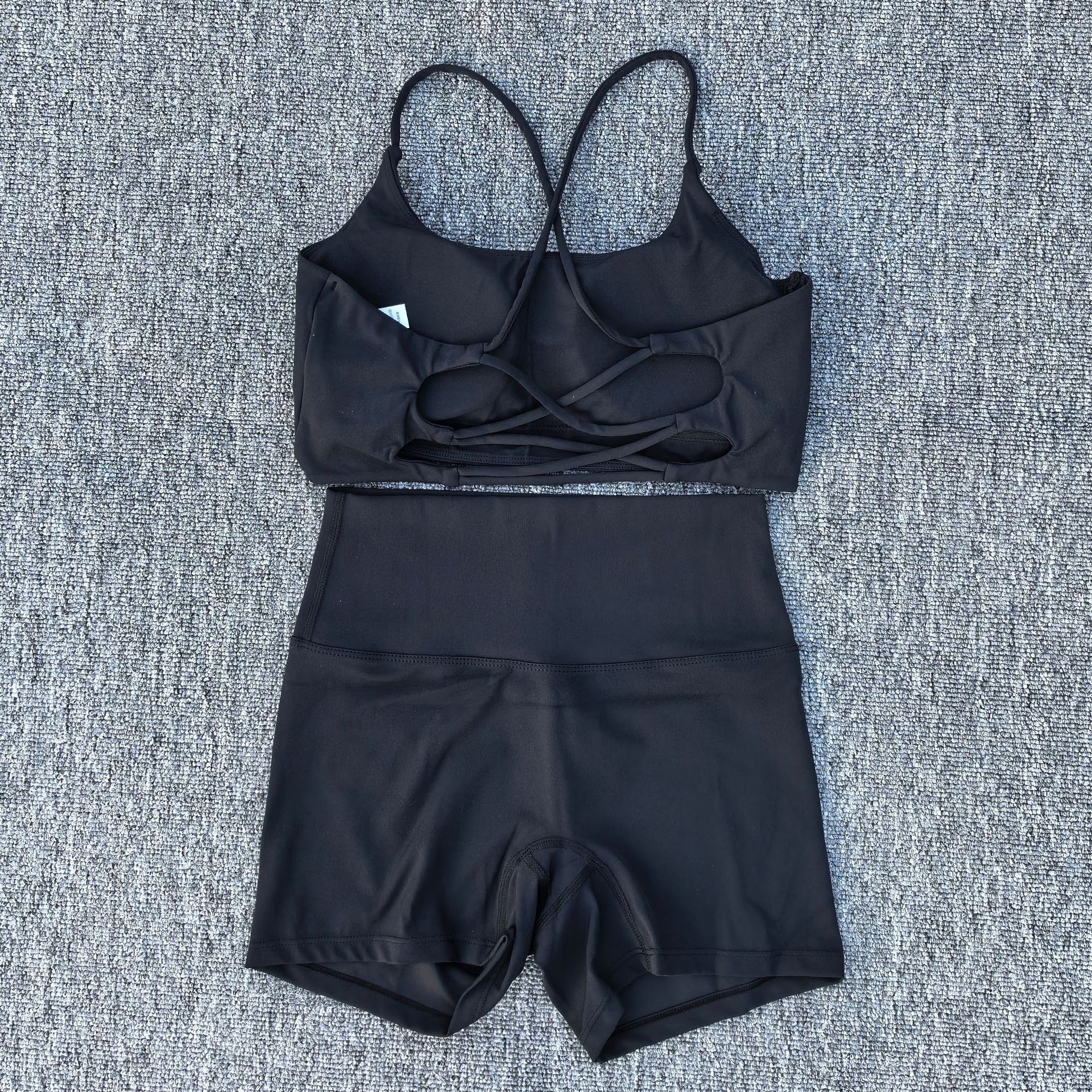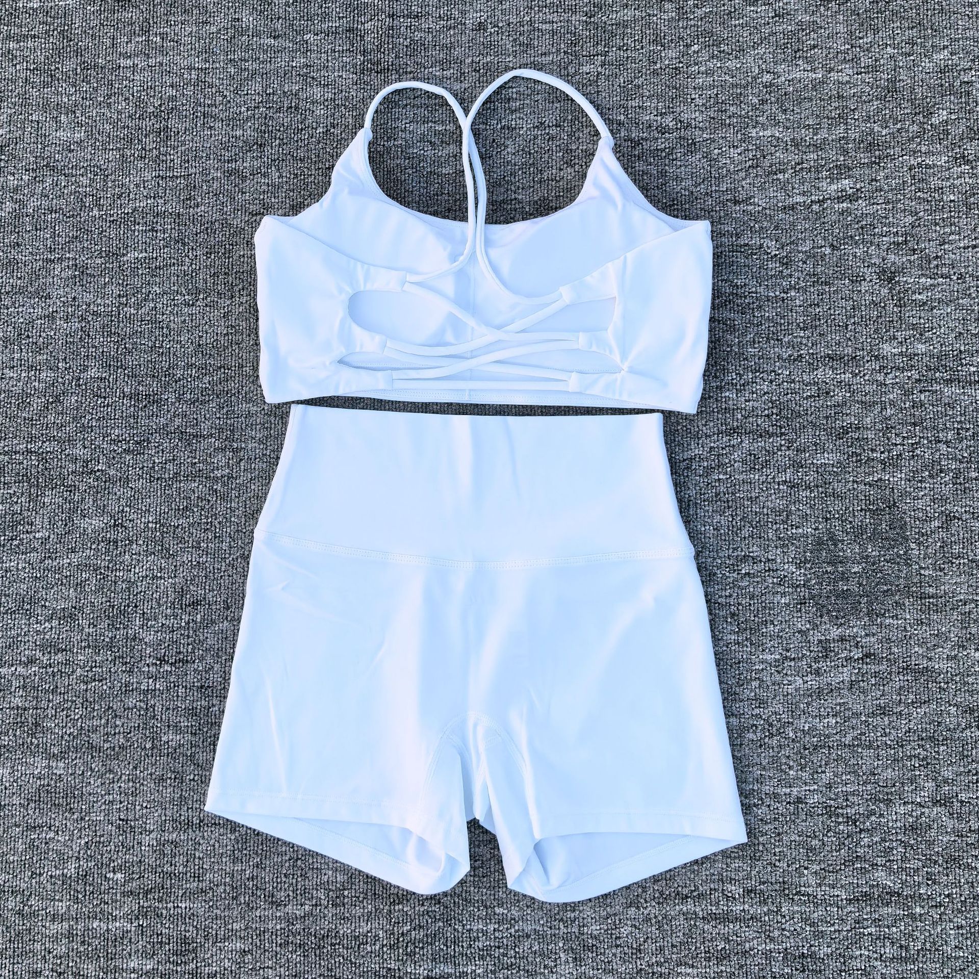 벌거 벗은 얇은 어깨 끈 크로스 스포츠 브라 요가 반바지 세트 여성 스포츠 속옷 피트니스 브래지어 조끼