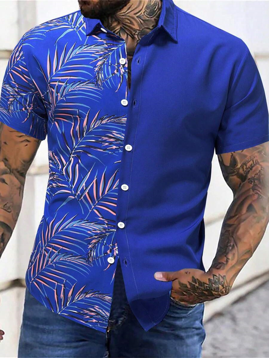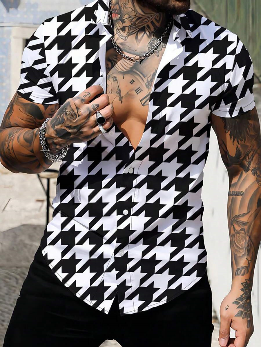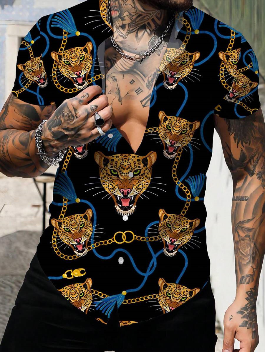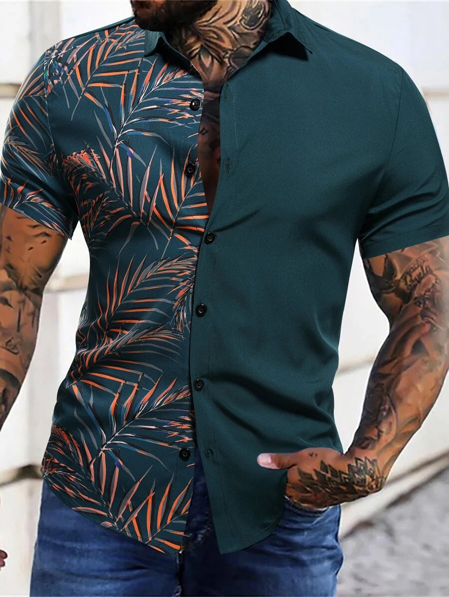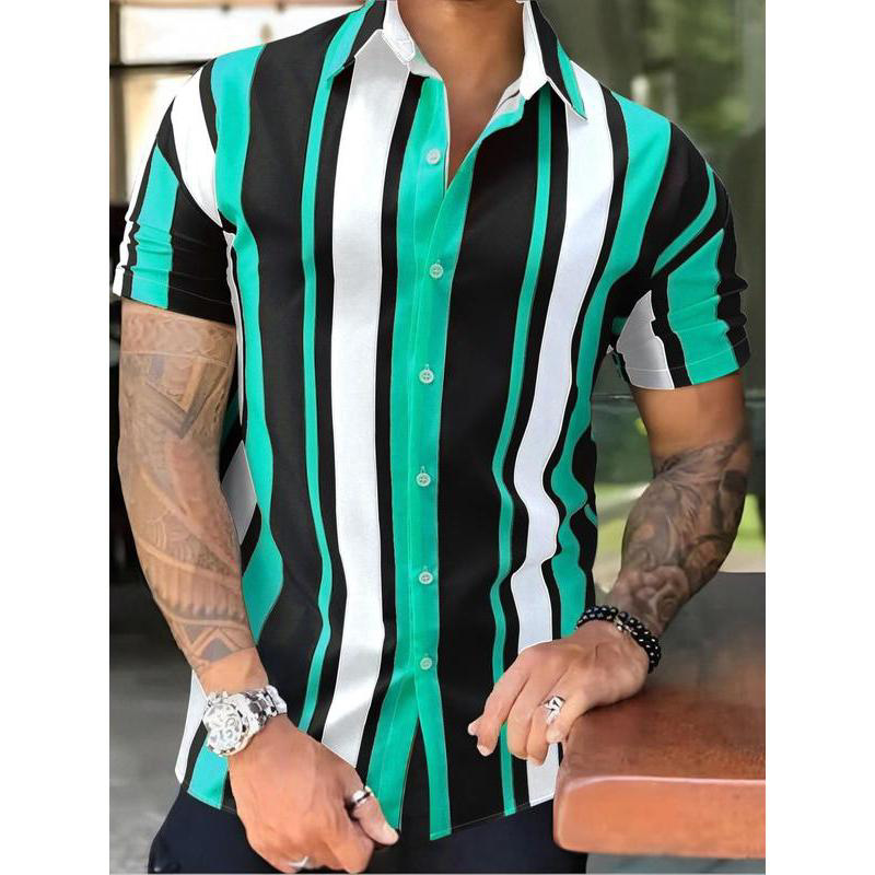 2025 여름 유럽과 미국 남성 셔츠 3D 디지털 인쇄 짧은 소매 인쇄 셔츠 옷깃 남성 셔츠스토어 가기