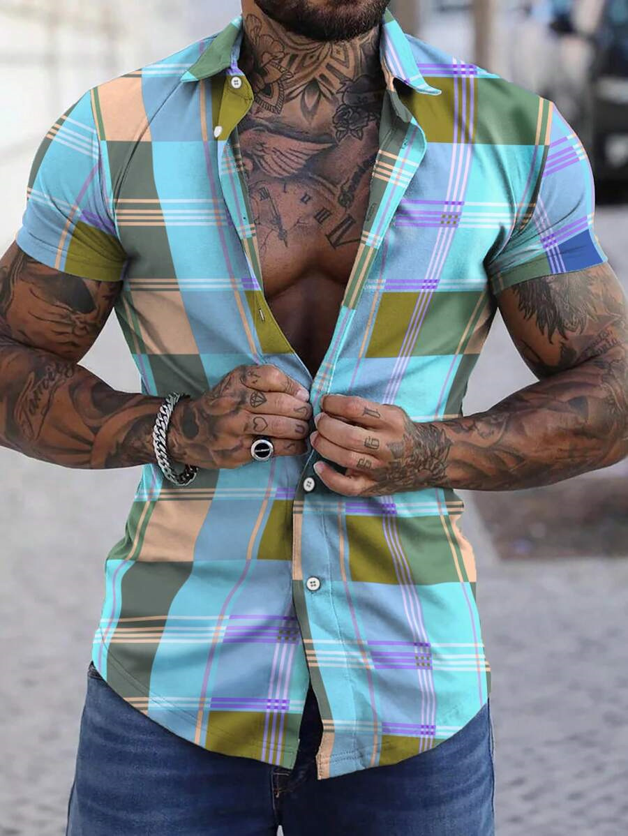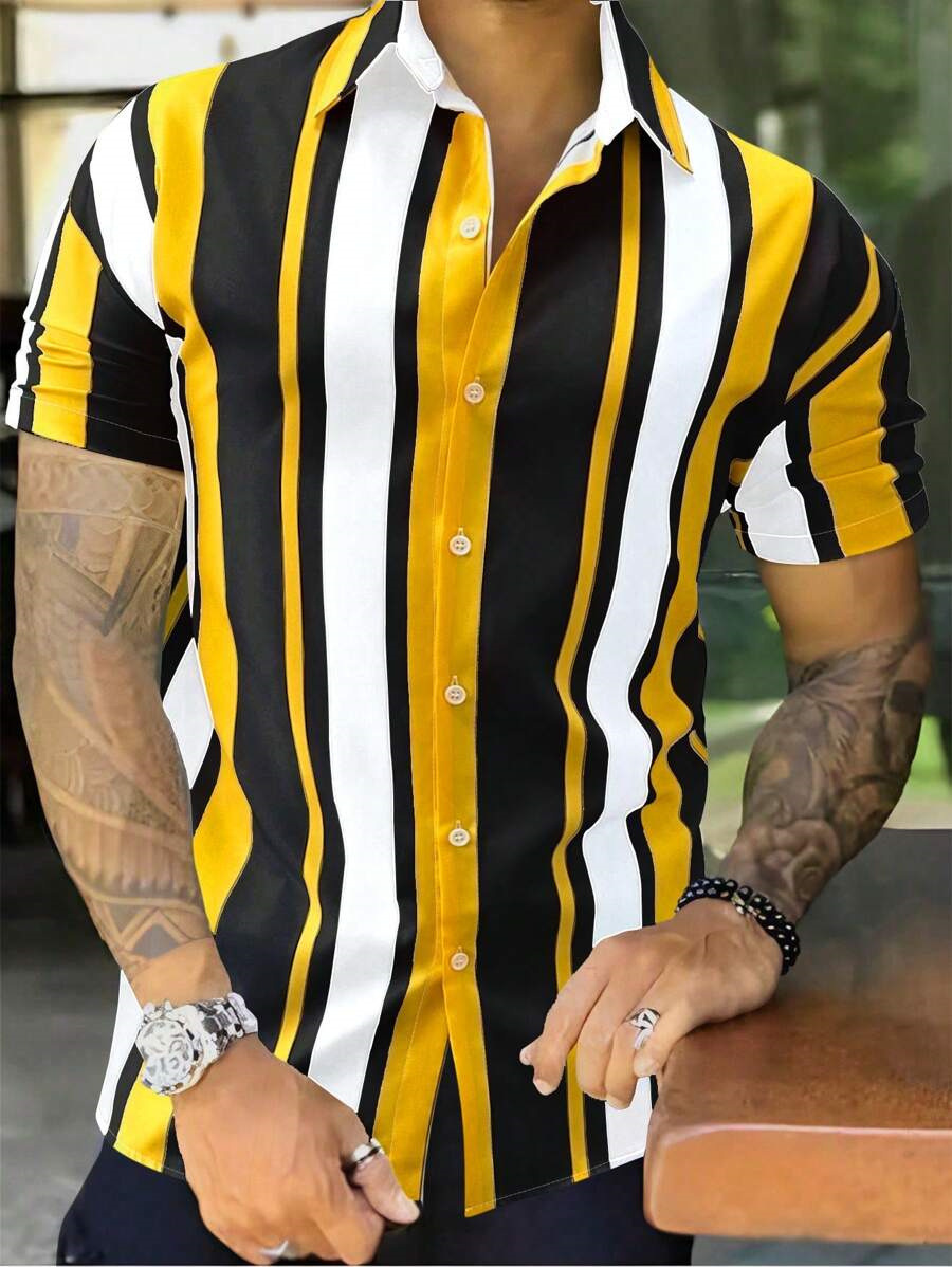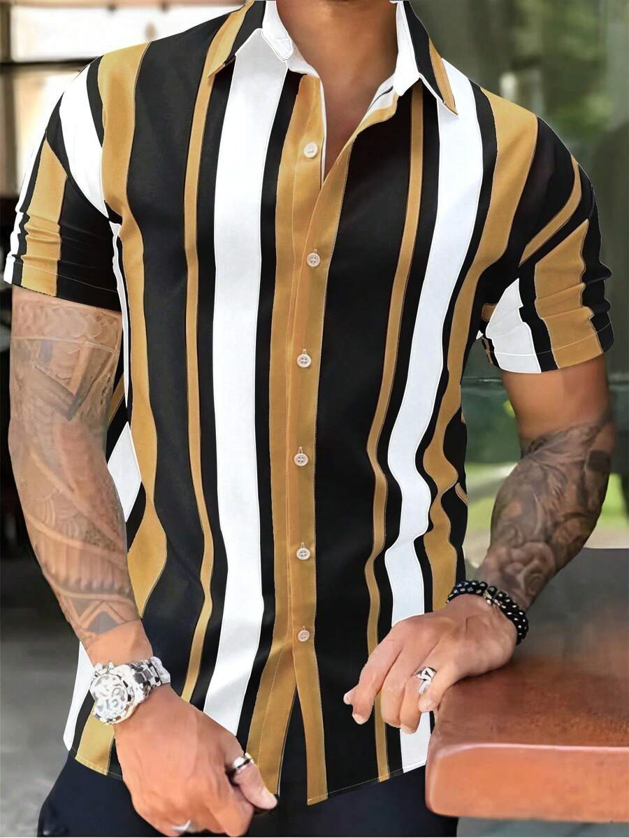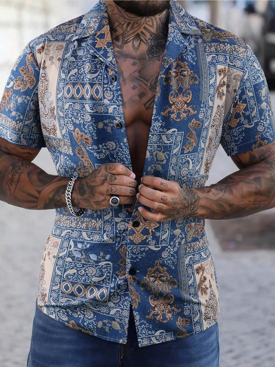 2025 여름 유럽과 미국 남성 셔츠 3D 디지털 인쇄 짧은 소매 인쇄 셔츠 옷깃 남성 셔츠스토어 가기