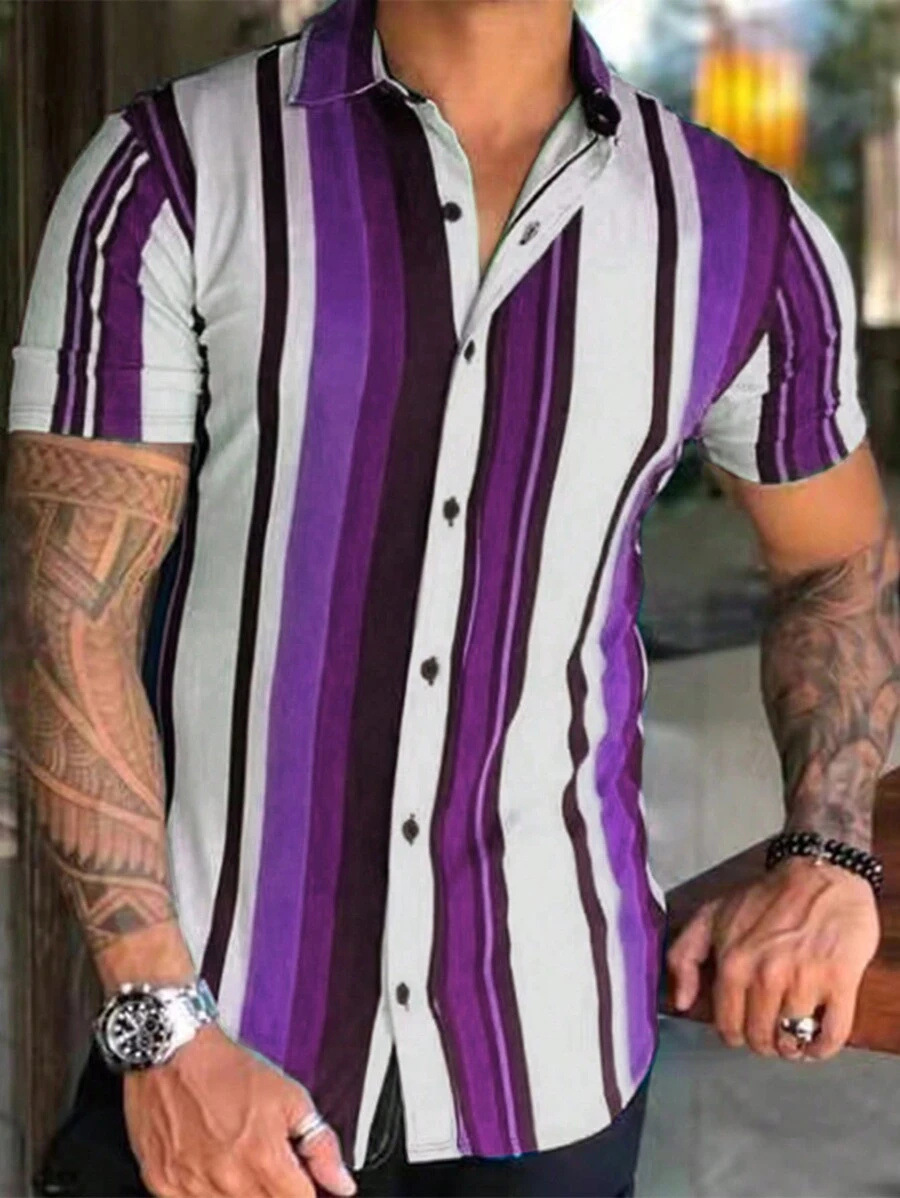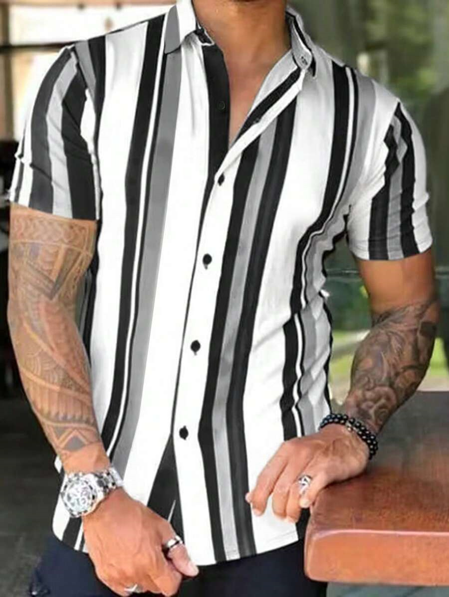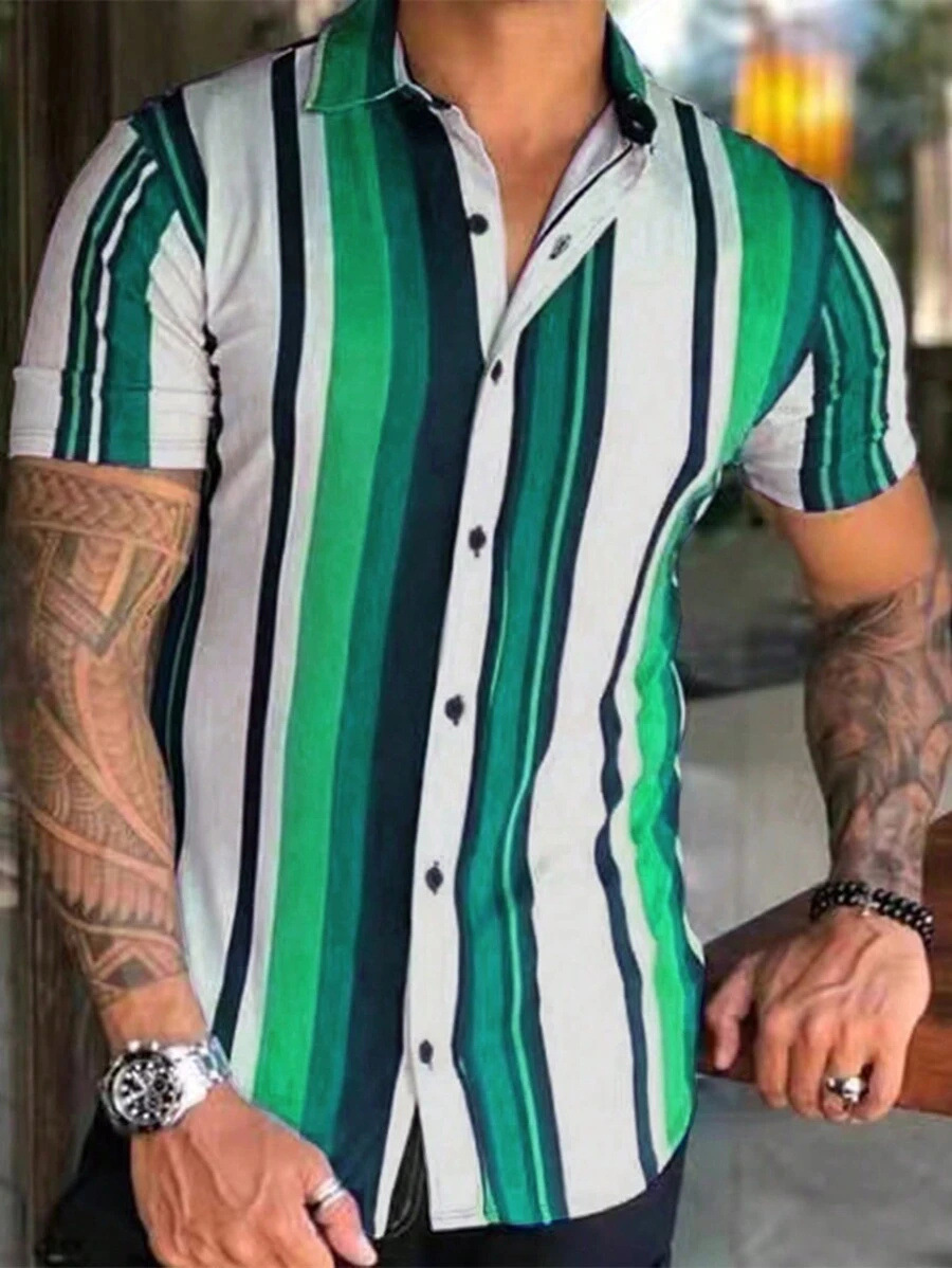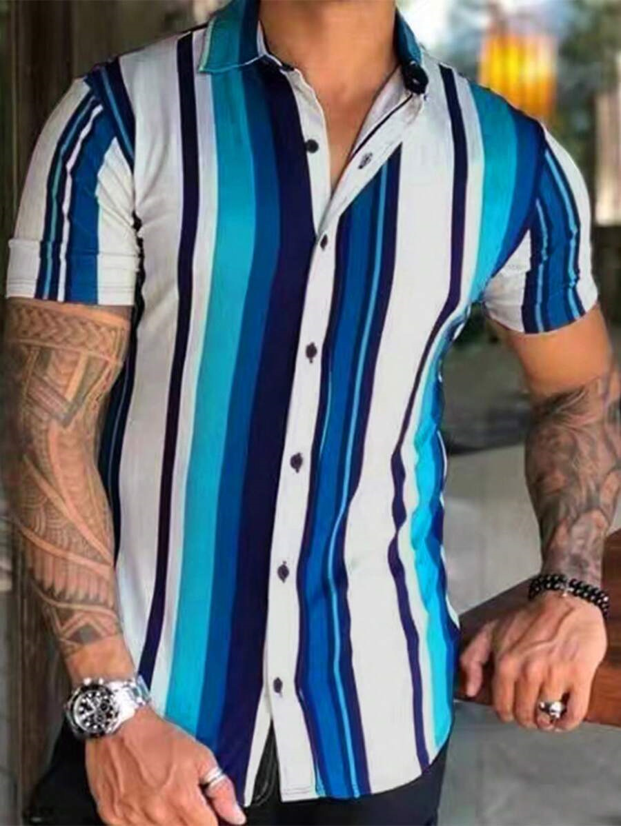2025 여름 유럽과 미국 남성 셔츠 3D 디지털 인쇄 짧은 소매 인쇄 셔츠 옷깃 남성 셔츠스토어 가기