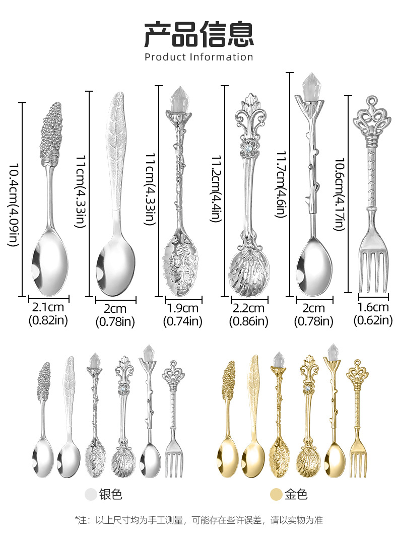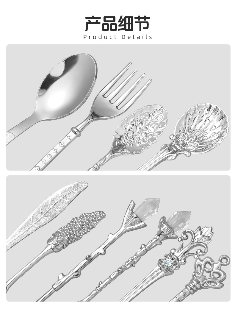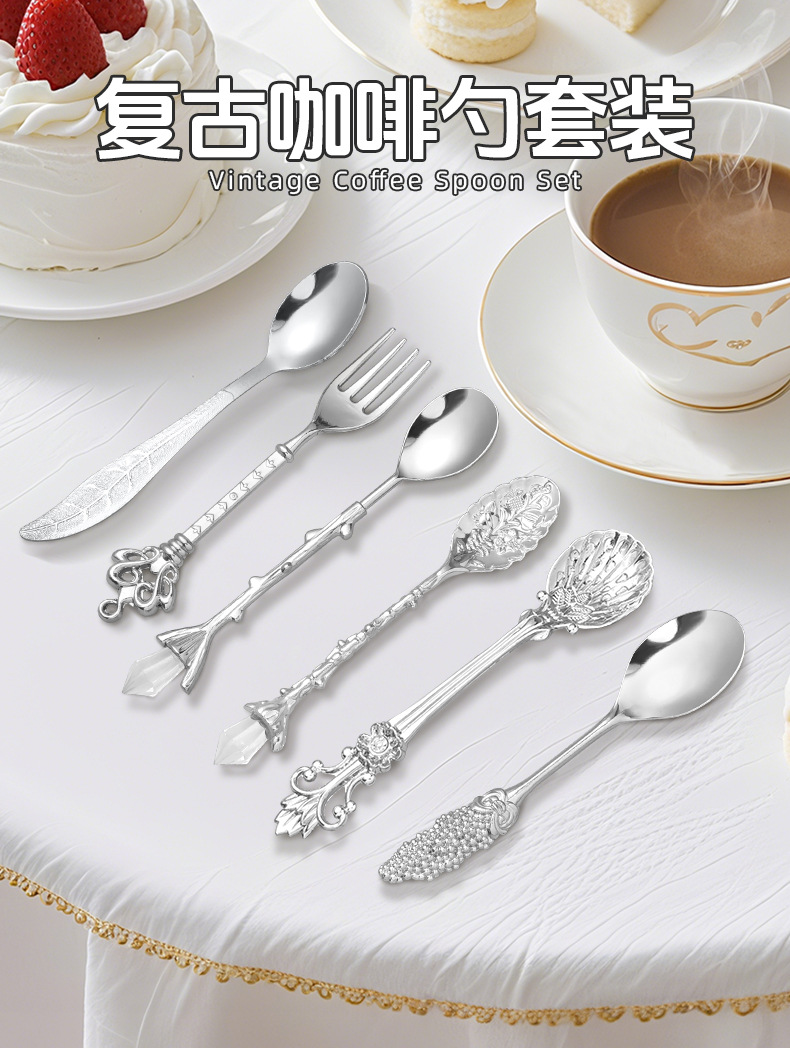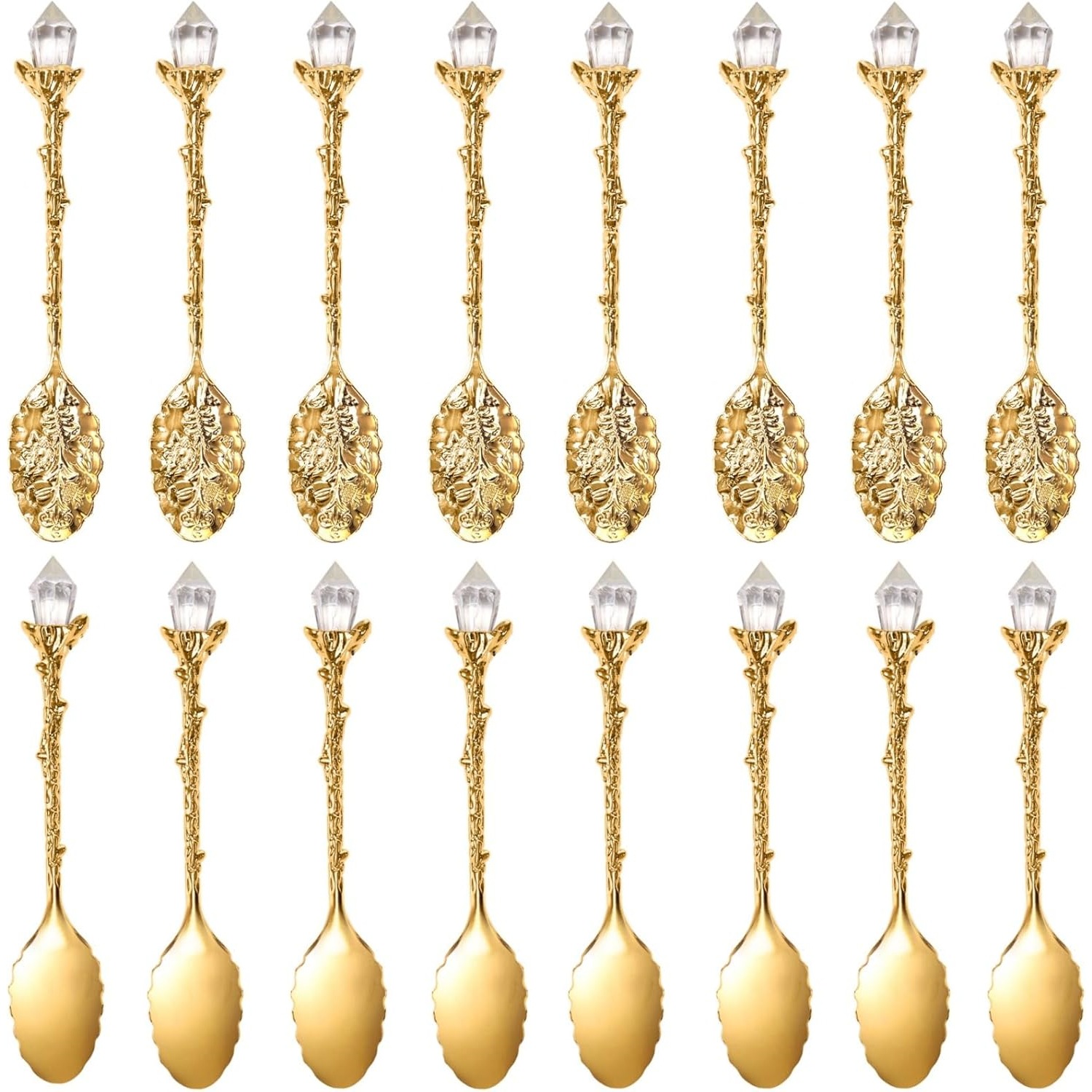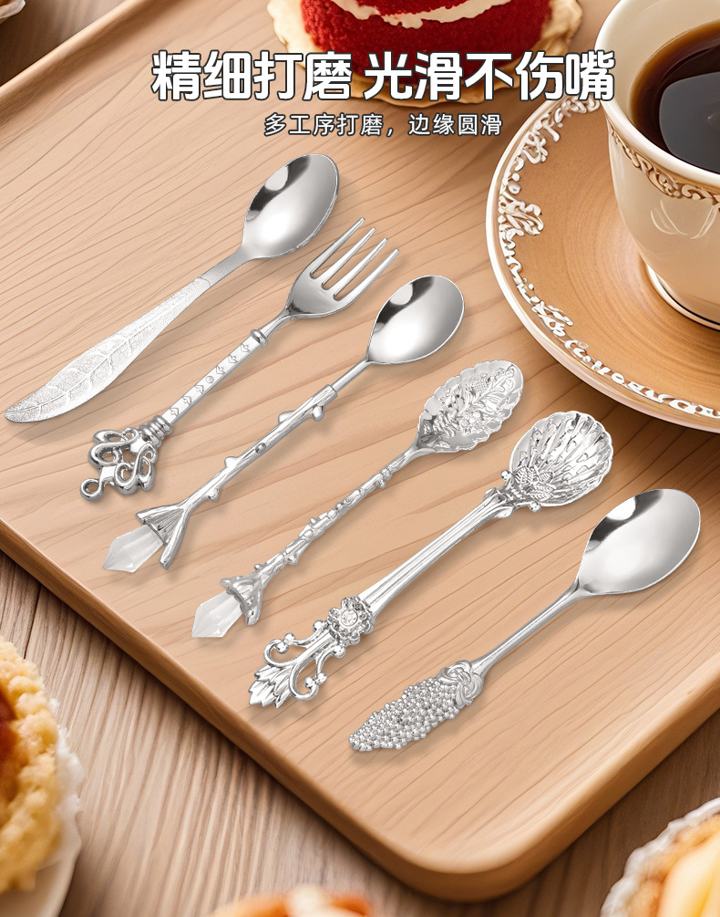 유럽식 레트로 코트 커피 스푼 6 팩 조각 크리스탈 스푼 리프 스푼 아이스크림 스푼 디저트 스푼 잼 스푼