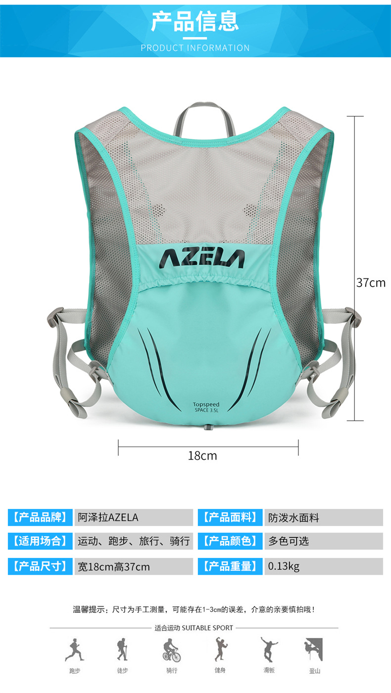 Azera 워터 가방 야외 스포츠 크로스 컨트리 러닝 배낭 사이클링 마라톤 조끼 배낭