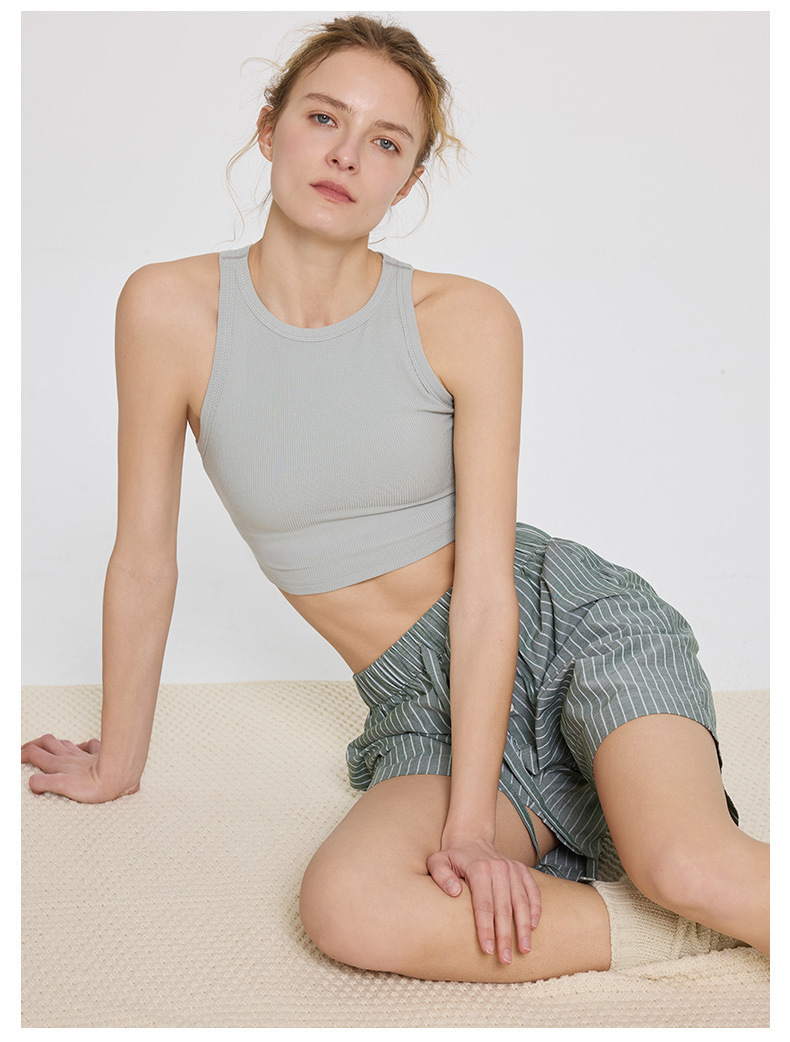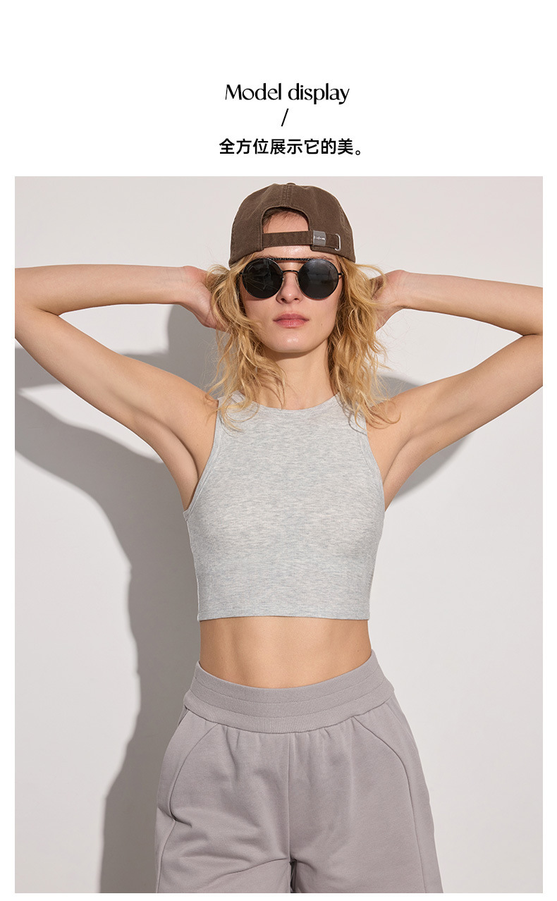 주위에 가득한 신선함 가을 겨울 신상 요가복 여성용 고정컵 민소매 탱크탑 텐셀 모달 골지 피트니스 스포츠 브라