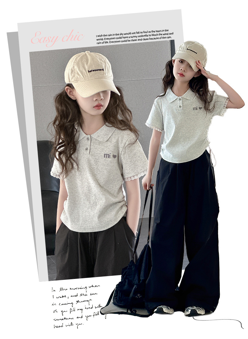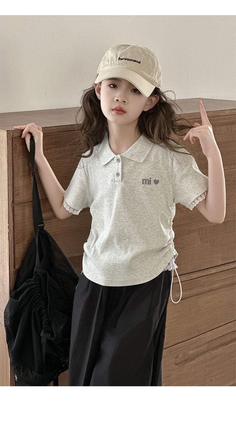 여자 여름 폴로 반팔 2025 새로운 큰 어린이 유행 서양 스타일 드로우 스트링 슬림 티셔츠 탑 아메리칸 칼리지 T스토어 가기