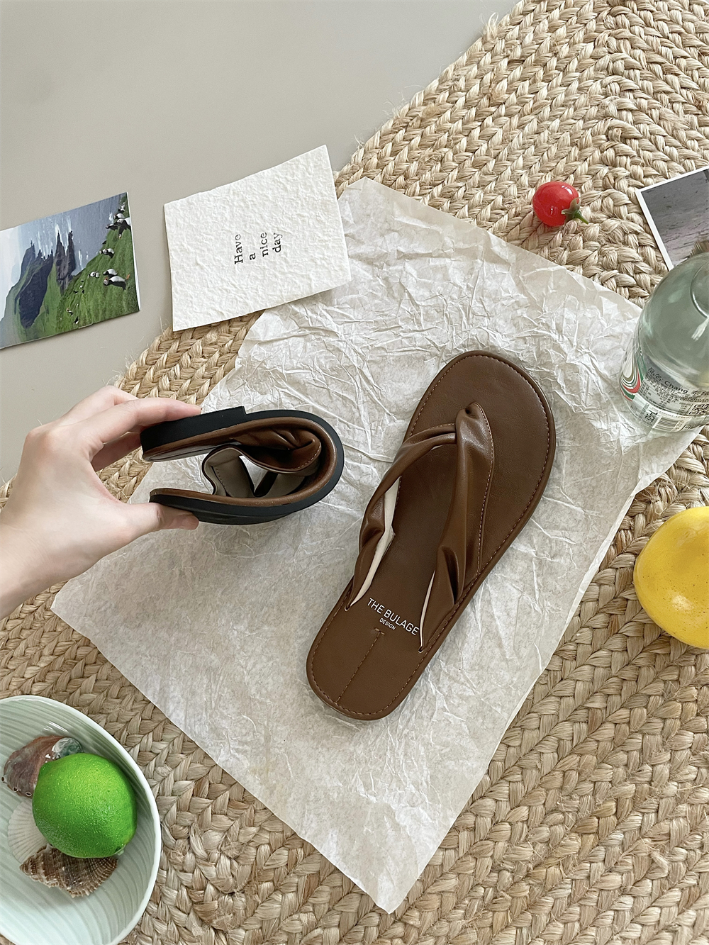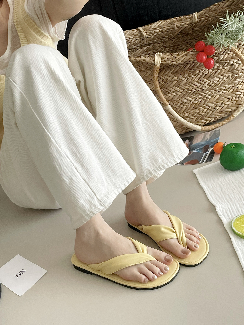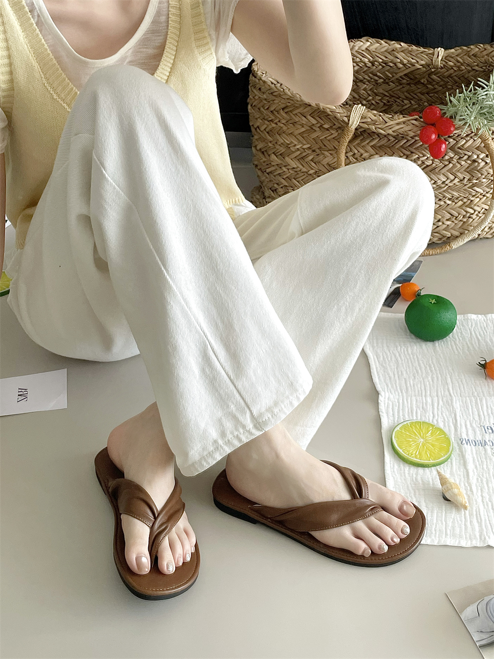 여성용 라운드 투 캐주얼 슬립온 플립플롭 2025 여름 신작 게으른 플립플롭 플랫 샌들