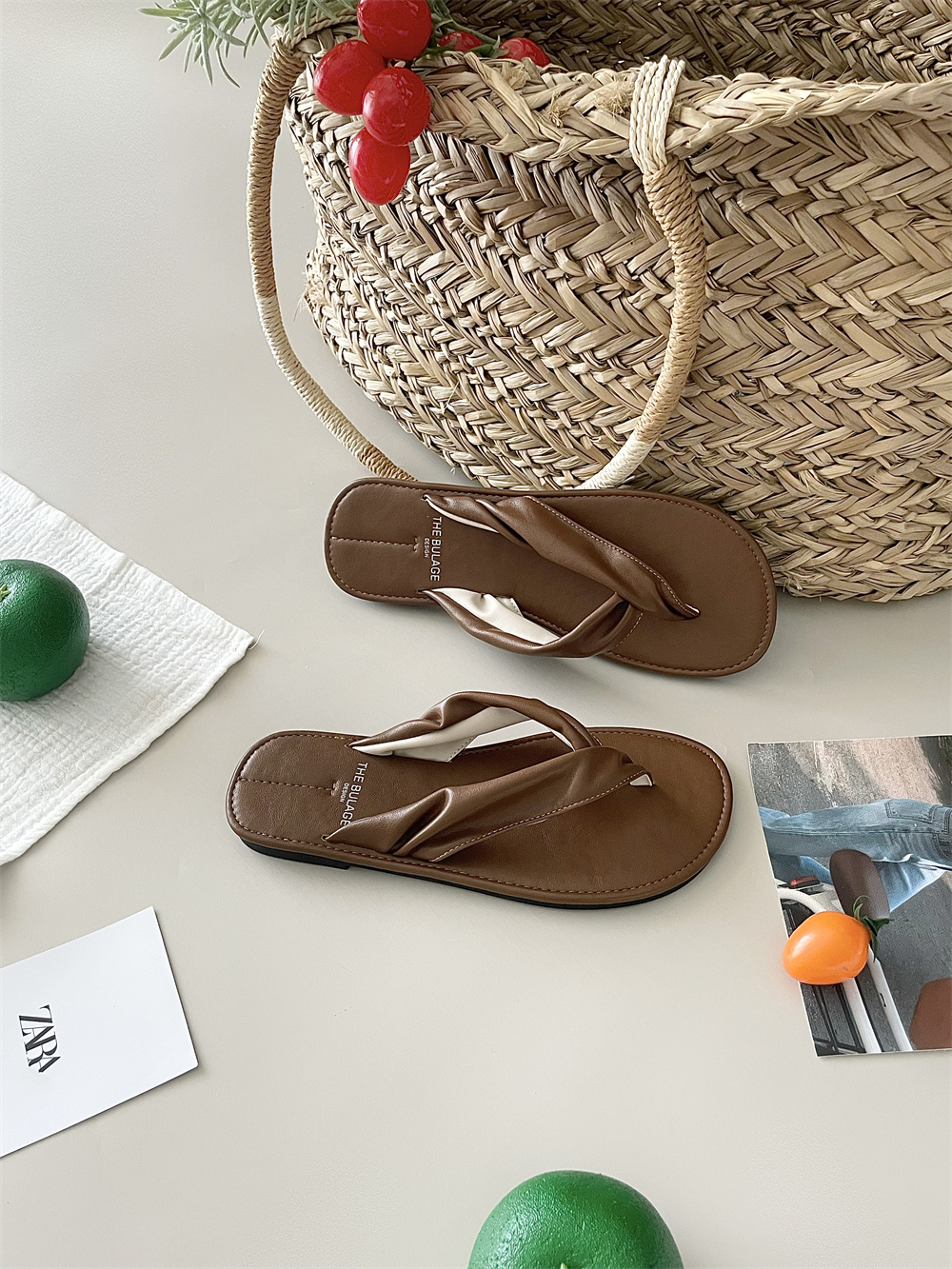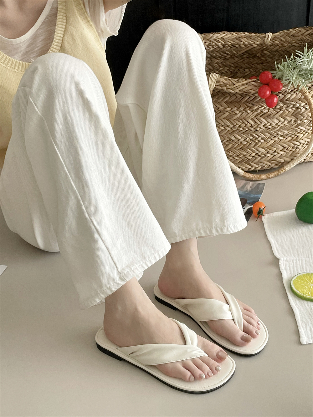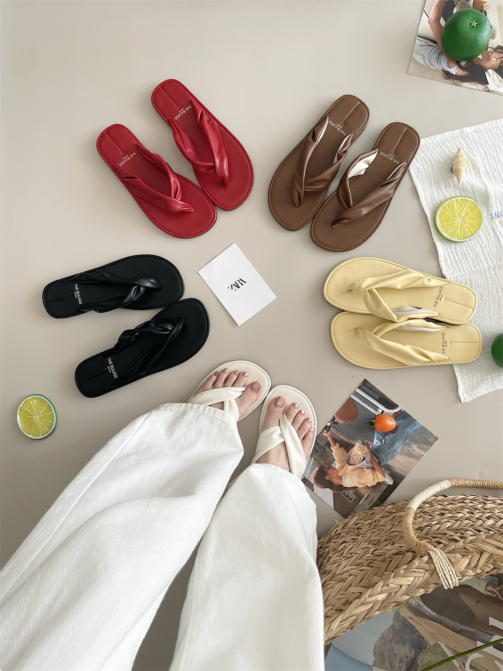 여성용 라운드 투 캐주얼 슬립온 플립플롭 2025 여름 신작 게으른 플립플롭 플랫 샌들