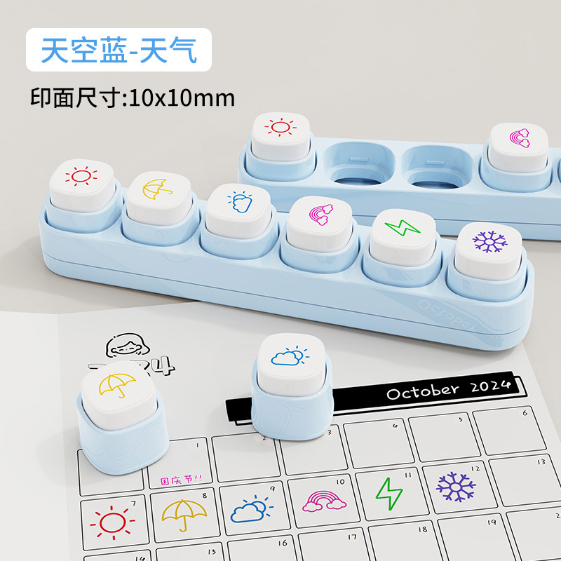 • 6개의 연합 계정 인감 - 하늘색 - 날씨(포장 포함)