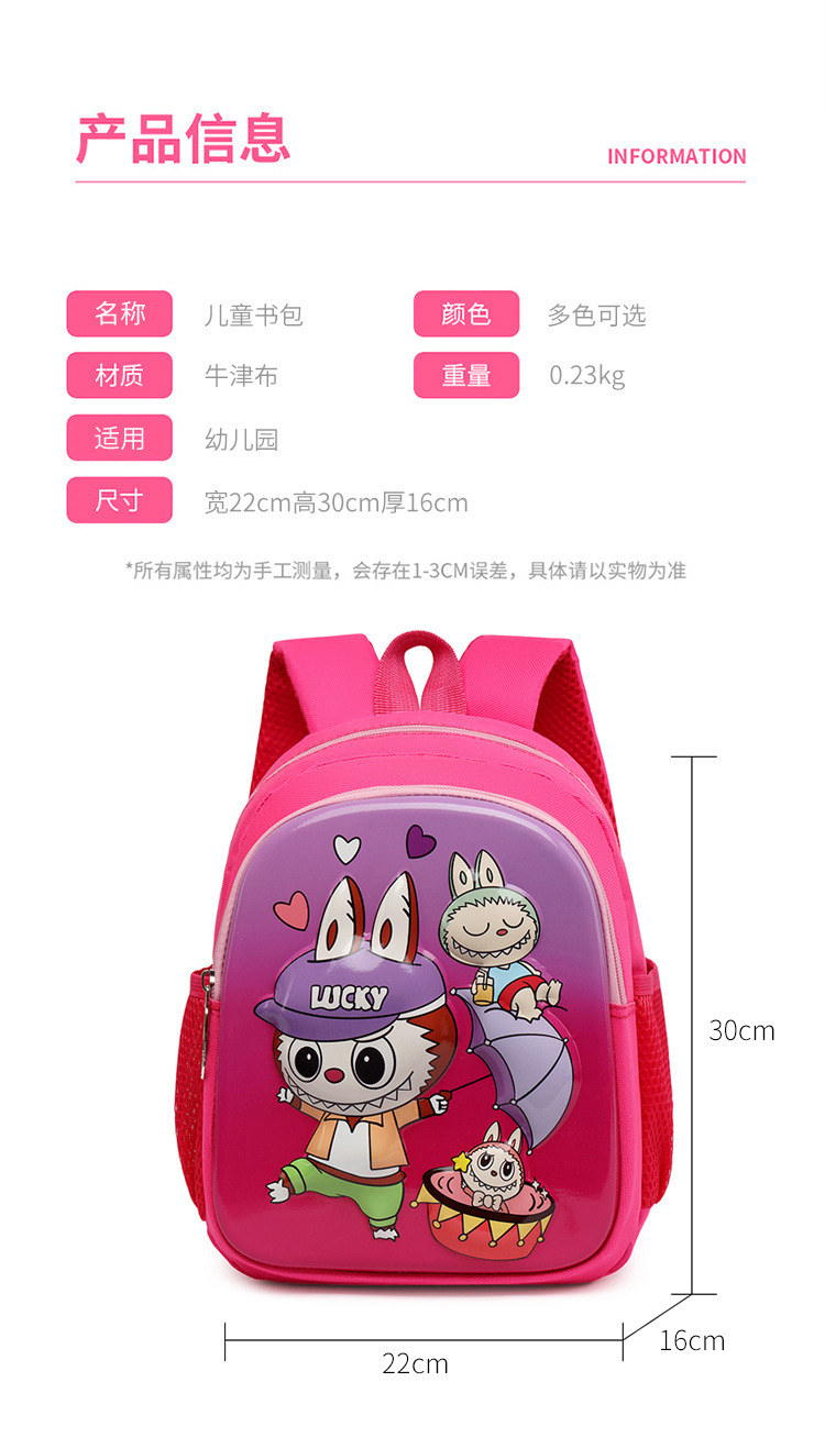 국경 간 l labubu schoolbag 어린이 배낭 한국어 버전 abubu 유치원 배낭 만화 소년과 소녀 schoolbag