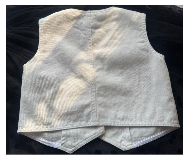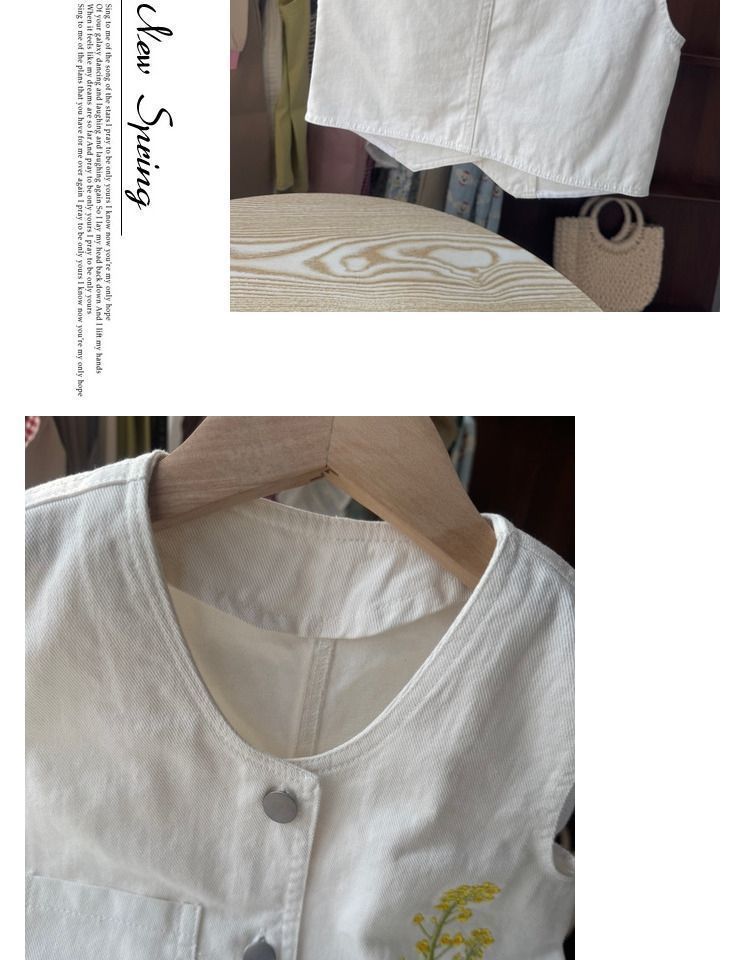 여자 흰색 데님 자수 조끼 2025 봄, 가을 겉옷 어린이 칼라리스 레이어드 조끼 얇은 양복 조끼스토어 가기