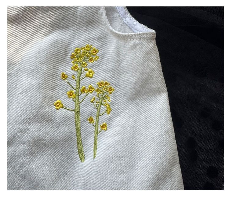 여자 흰색 데님 자수 조끼 2025 봄, 가을 겉옷 어린이 칼라리스 레이어드 조끼 얇은 양복 조끼