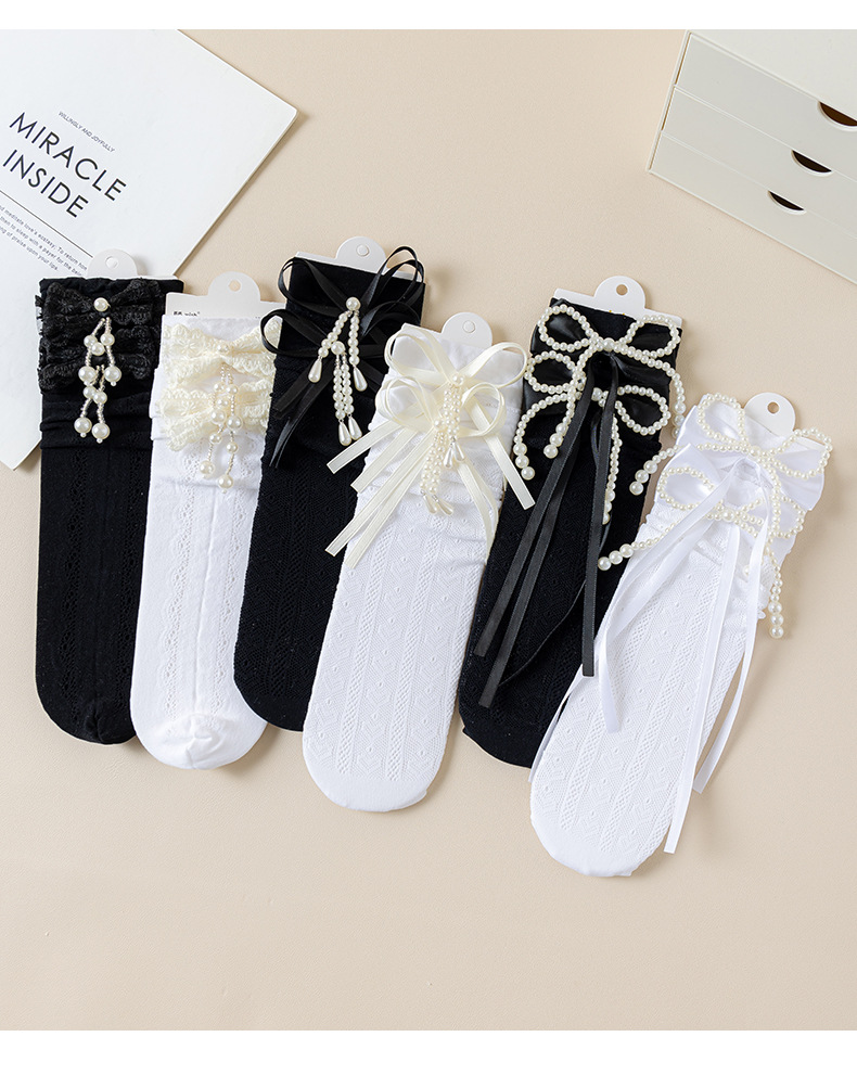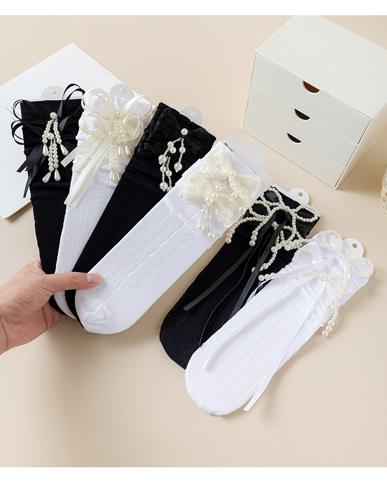 여자 양말 여름 얇은 어린이 로리타 레이스 공주 양말 흰색 아기 레이스 중간 길이 종아리 양말스토어 가기