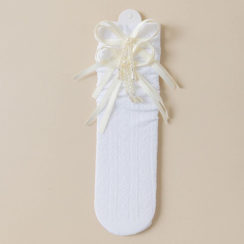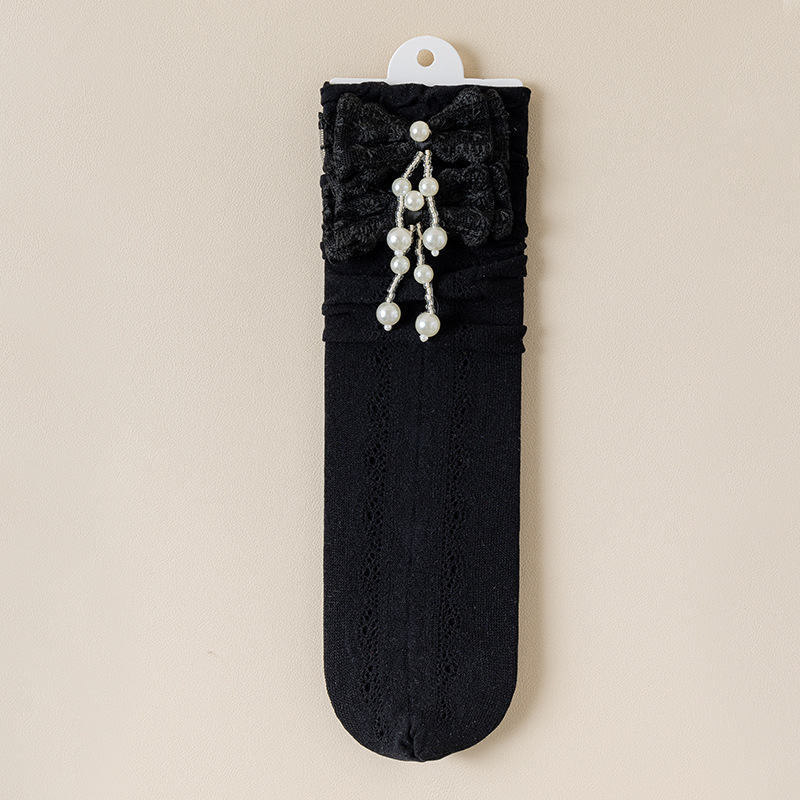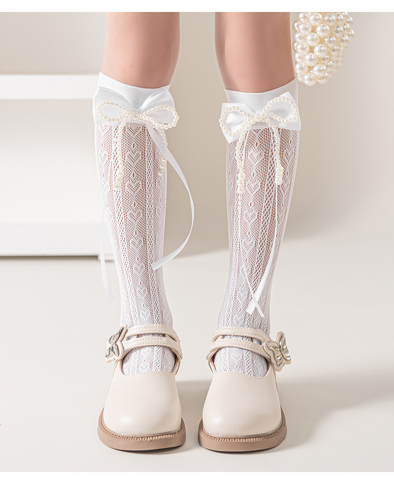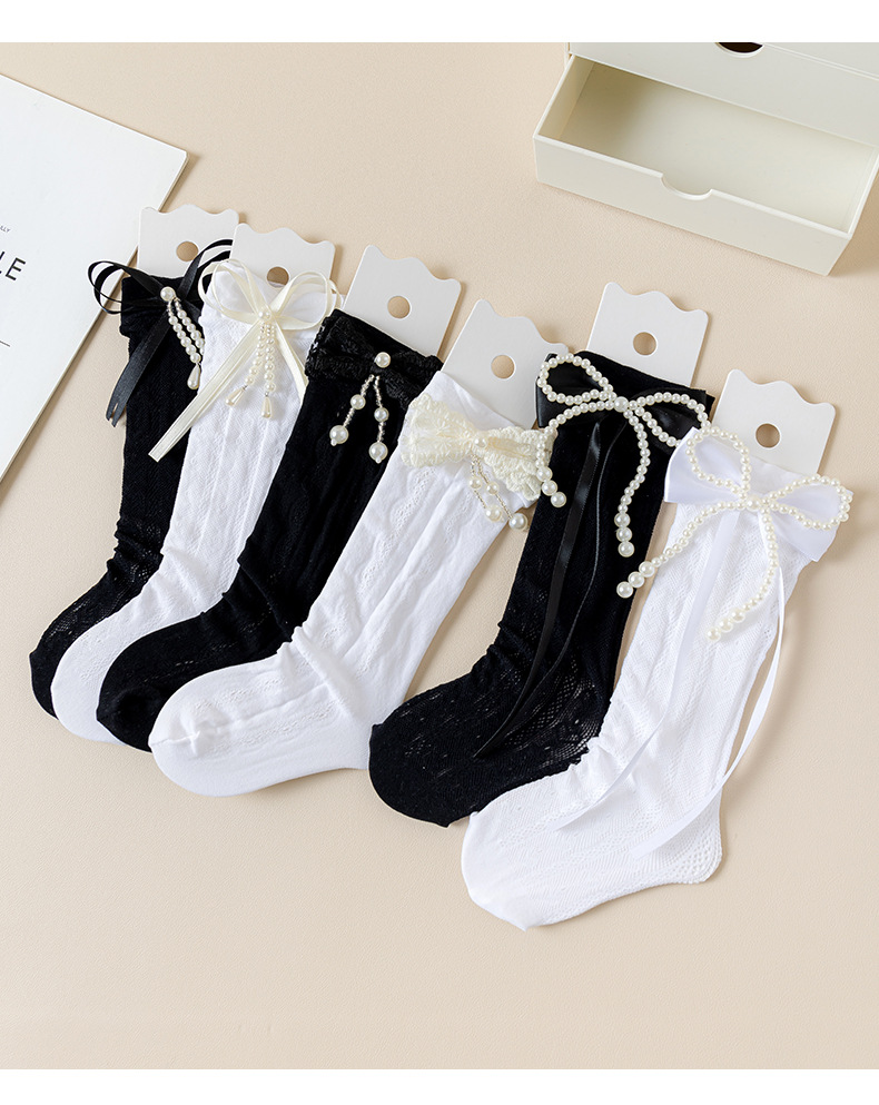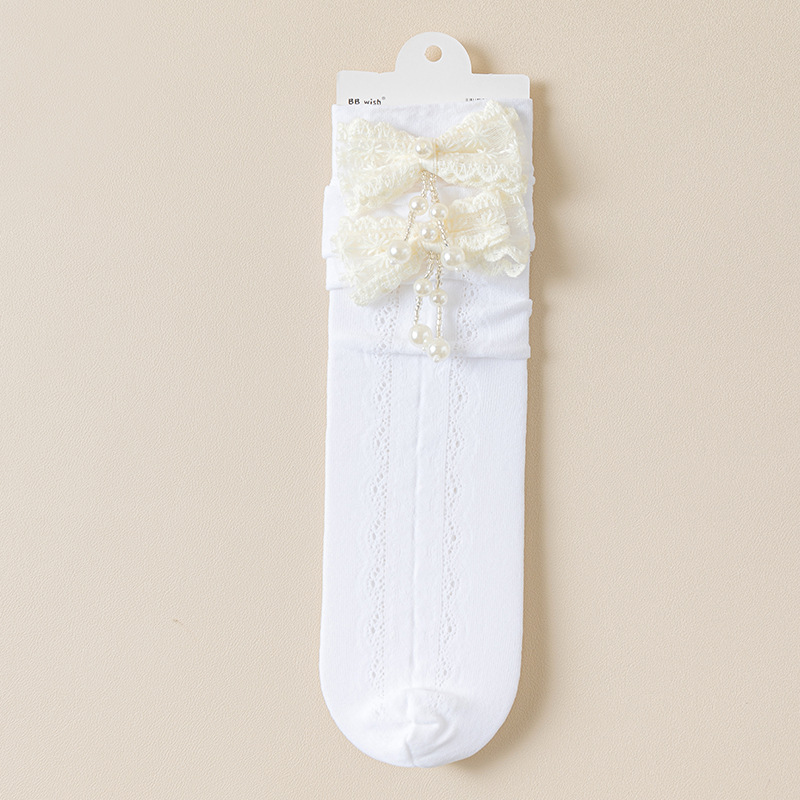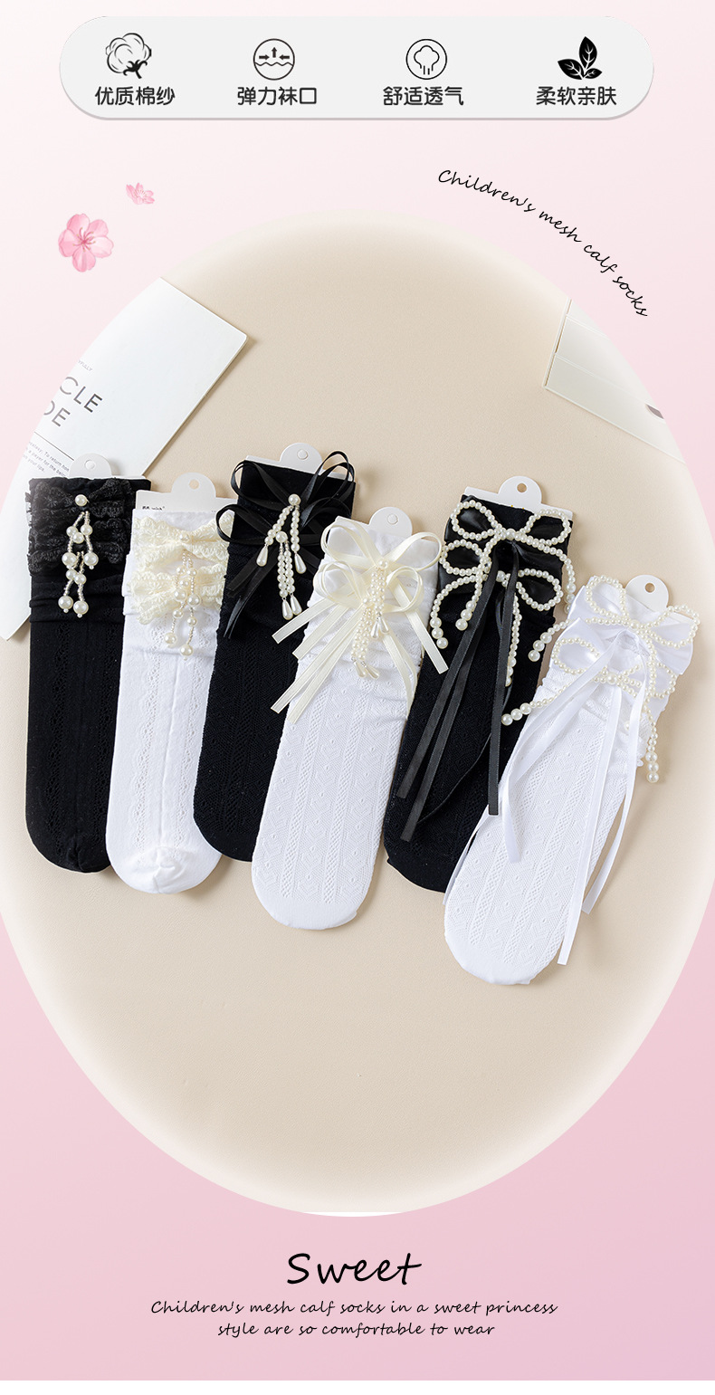 여자 양말 여름 얇은 어린이 로리타 레이스 공주 양말 흰색 아기 레이스 중간 길이 종아리 양말