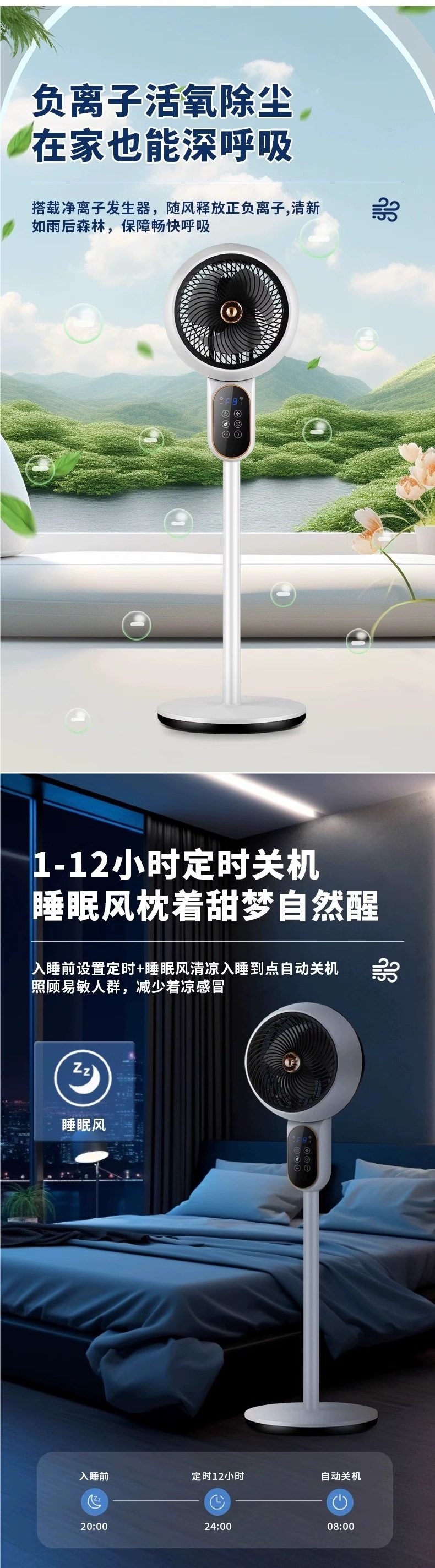 • [Xiaoai 음성 모델 강화] 자동 좌우 흔들기 + 리모콘 지능형 음성 터치 음이온 12시간 타이밍 1초 속도
