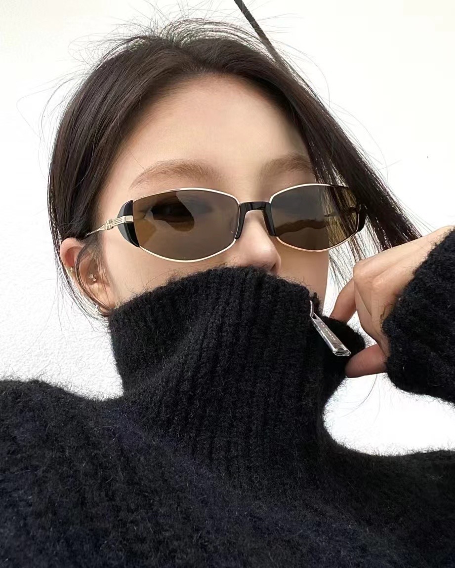 한국식 메탈 브라운 선글라스 인터넷 연예인 남성과 여성을 위한 작은 갈색 거울 복고풍 차양 여름 선글라스 자외선 차단