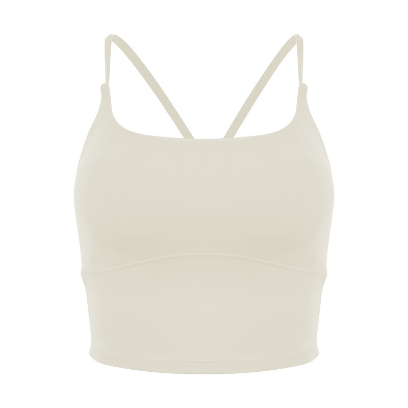 2026 봄 신상 라이크라 스포츠 브라, 얇은 어깨끈, 고정컵, 요가 브라, 고탄력, 스포티한 등 디자인 여성용