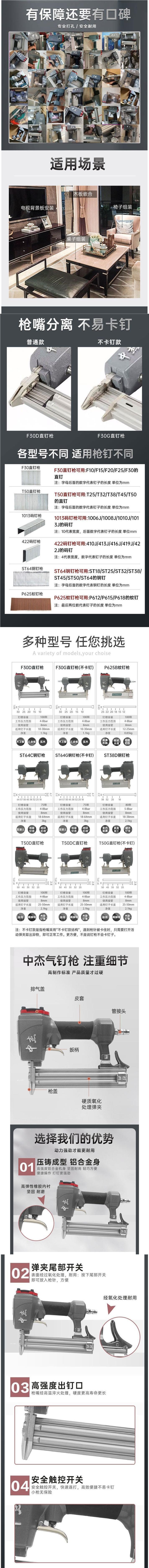 Zhongjie 오리지널 정품 네일 건 공압 F30 스트레이트 네일 건 목공 장식 도구 T50 스트레이트 네일 건 스틸 네일 건 하이브리드