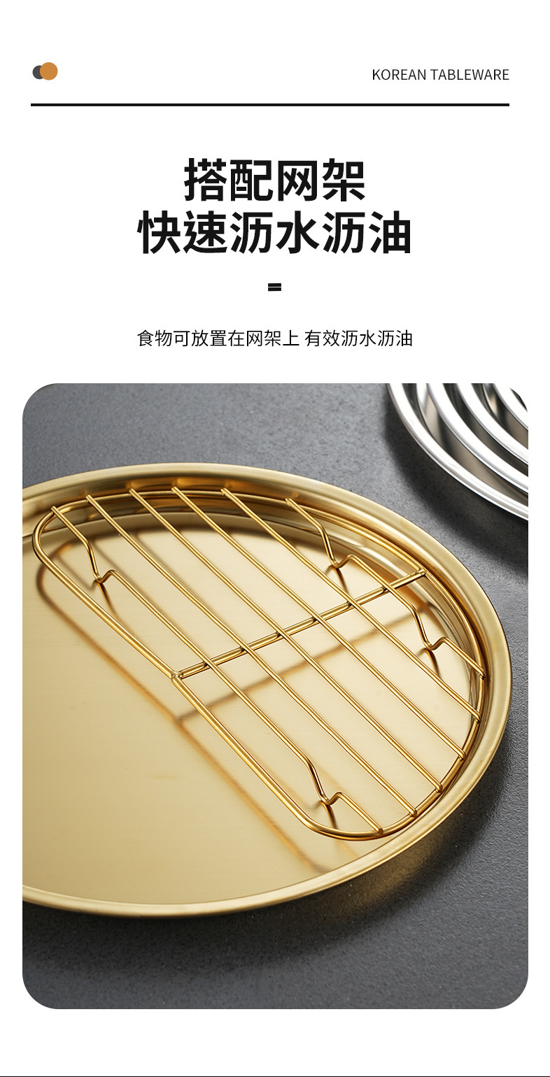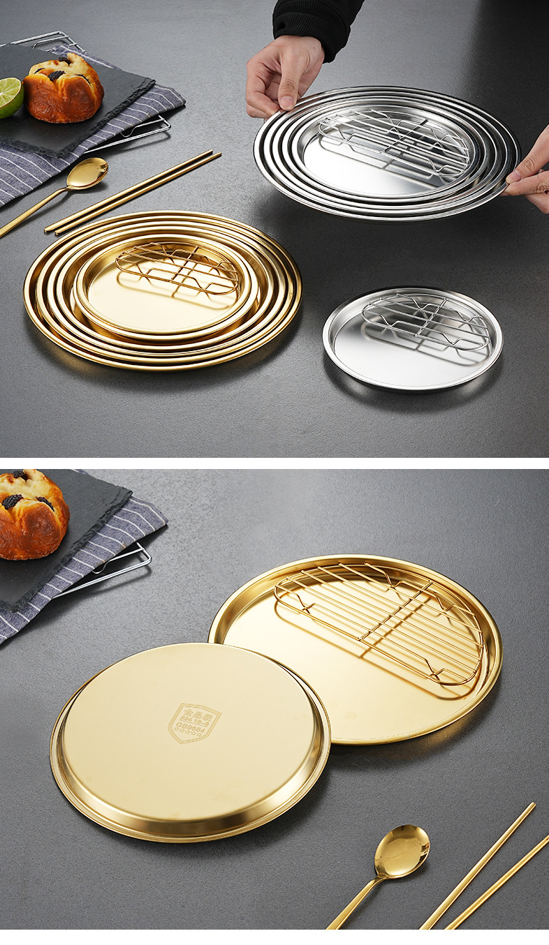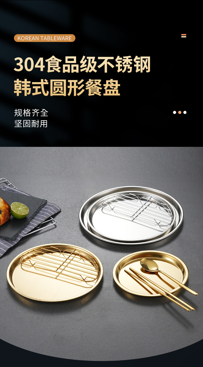 한국식 304 스테인리스 원형 튀김 스낵 접시 서양식 과일 접시 다용도 바베큐 스낵 접시