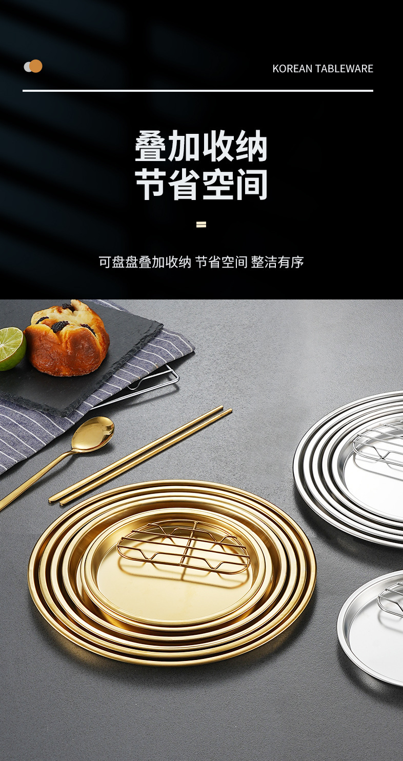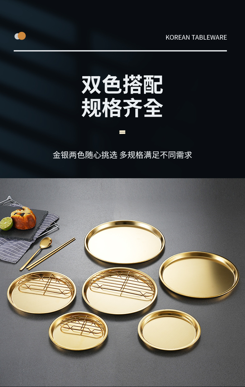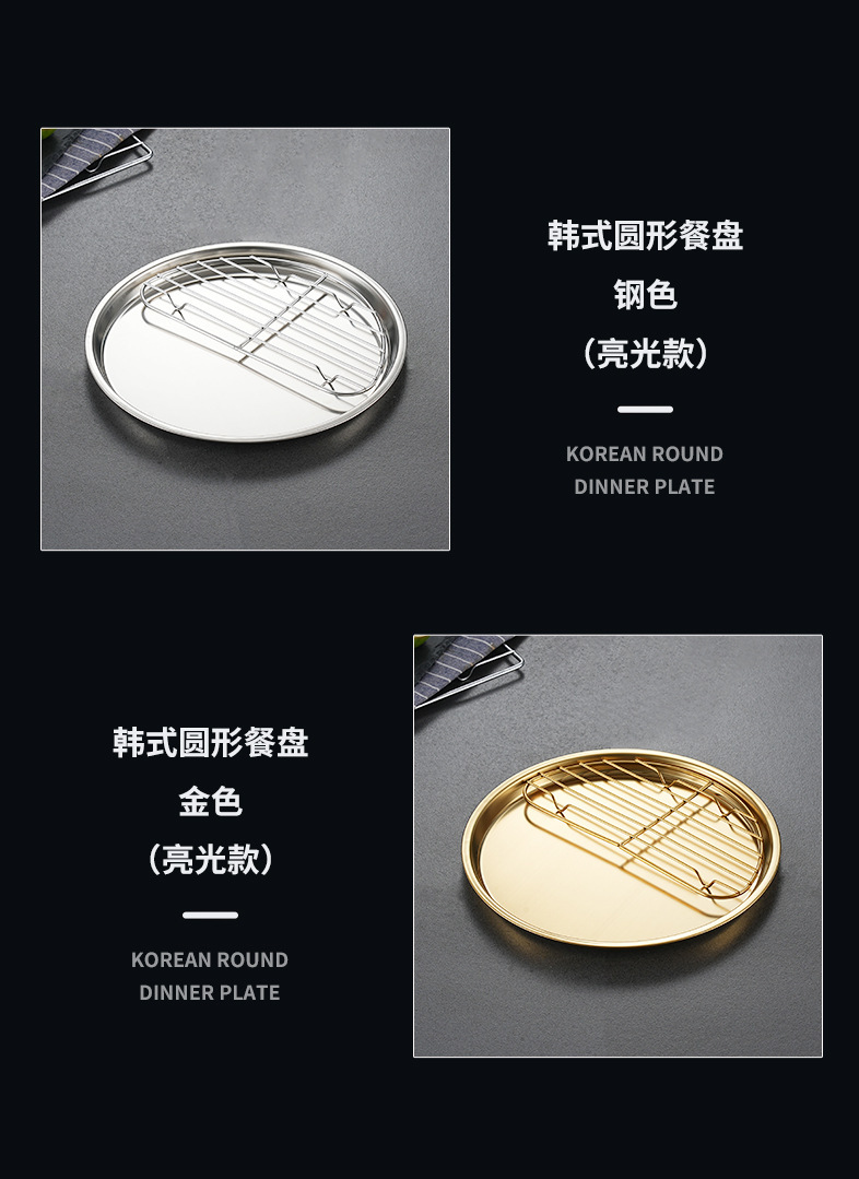 한국식 304 스테인리스 원형 튀김 스낵 접시 서양식 과일 접시 다용도 바베큐 스낵 접시