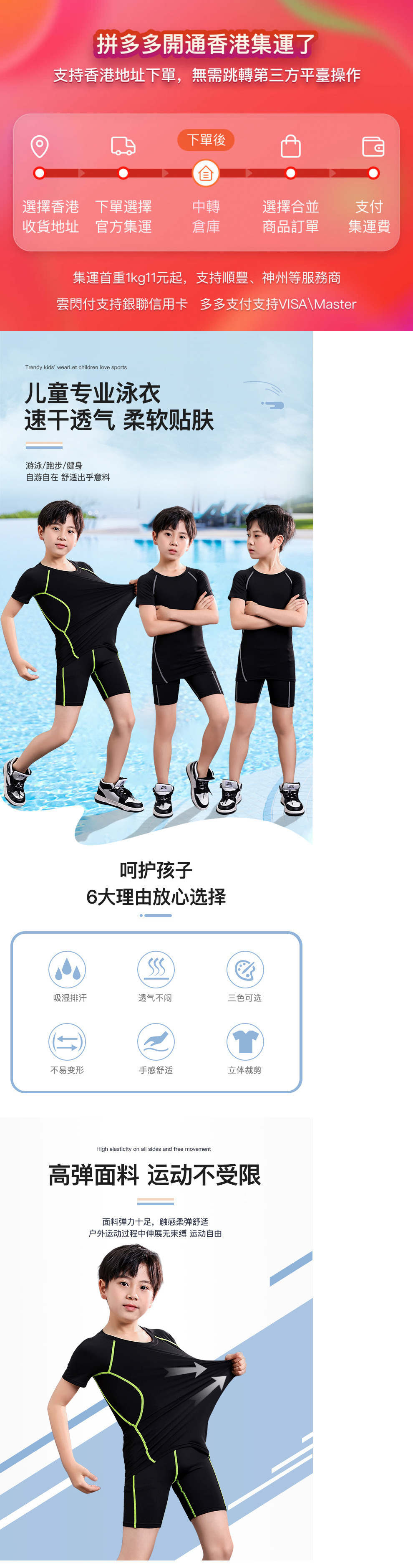 2023 어린이 수영복 속건성 수영 훈련 온천 슈트 전문 5점 소년 반팔 자외선 차단 스플릿 슈트스토어 가기